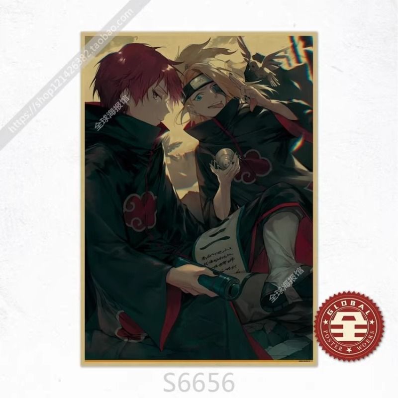 Frameless Naruto Uzumaki Naruto Sasuke Retro Kraft Paper Poster Bedroom Living Room Decoration Painting Hanging Painting