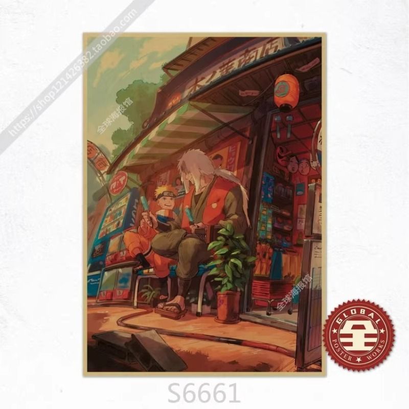 Frameless Naruto Uzumaki Naruto Sasuke Retro Kraft Paper Poster Bedroom Living Room Decoration Painting Hanging Painting