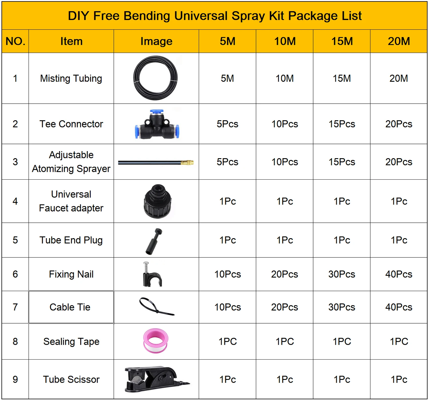 Free Bending Universal Spray Kit with 20cm Adjustable Yellow Copper Nozzles For Lawn Garden Irrigation Water Mister