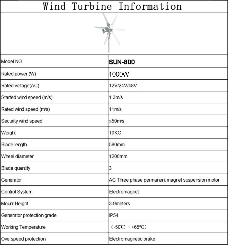 Protection: Battery overvoltage protect,wind-generator current limit,wind-generator brake,speed protection
