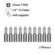 10Pcs/Lot 25mm CR-V PZ/PH Pozidrive Phillips Bits Hex Shanked Anti Slip Screwdriver Bits Magnetic Single Head PZ1 PZ2 PZ3 6.35mm