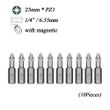 10Pcs/Lot 25mm CR-V PZ/PH Pozidrive Phillips Bits Hex Shanked Anti Slip Screwdriver Bits Magnetic Single Head PZ1 PZ2 PZ3 6.35mm