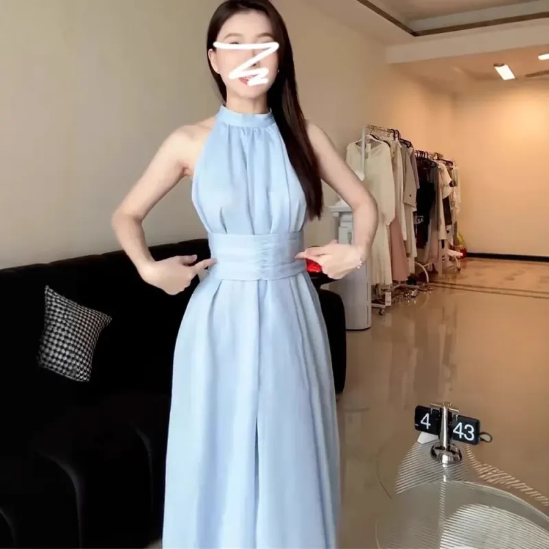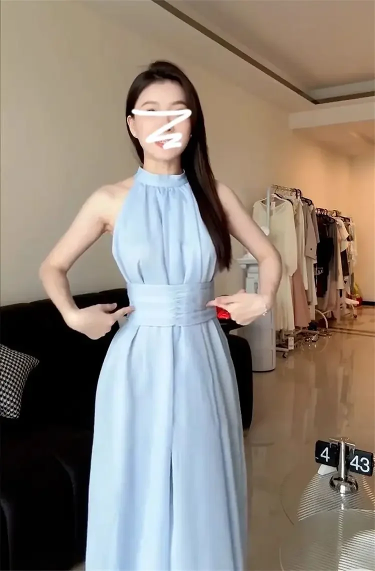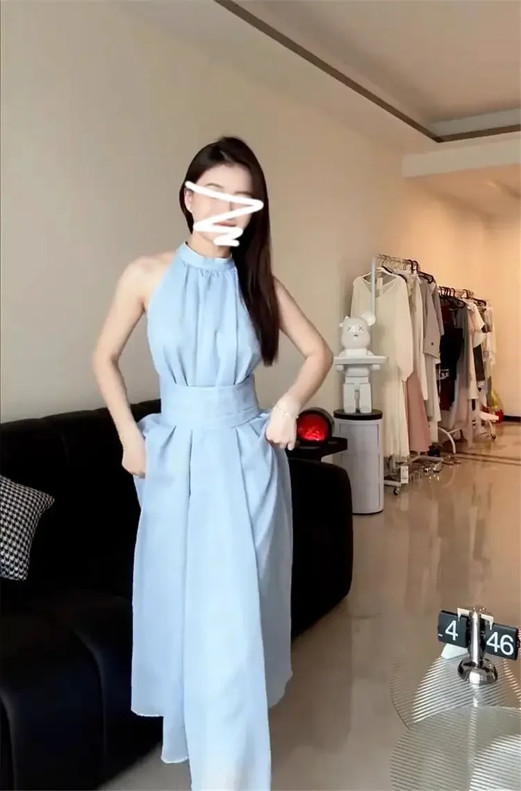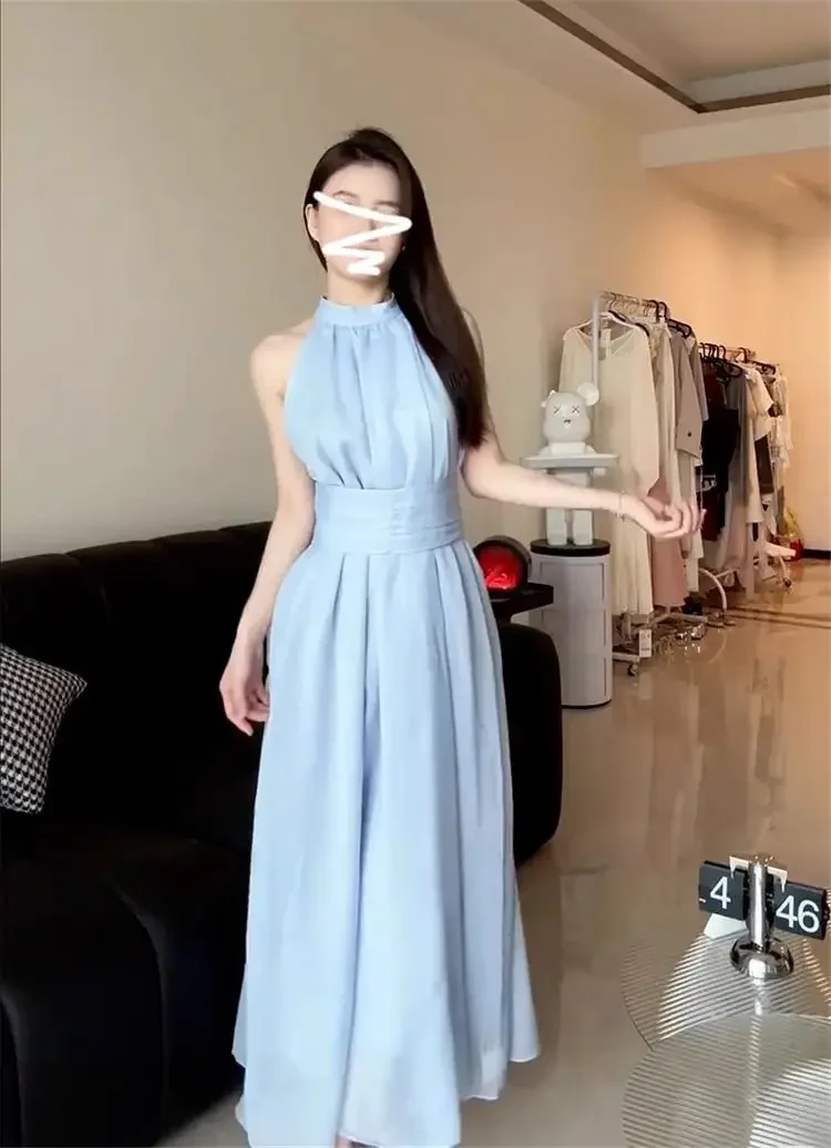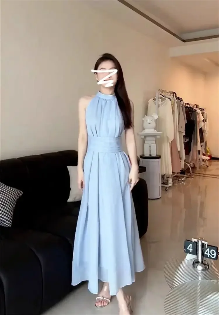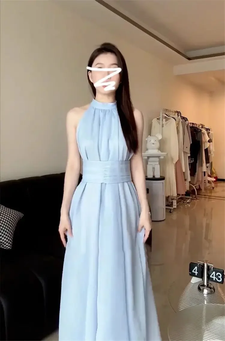 • Summer-ready Design : This French Blue Neck Hanging Strap dress is perfect for summer, offering a lightweight and breathable design ideal for seaside holidays.