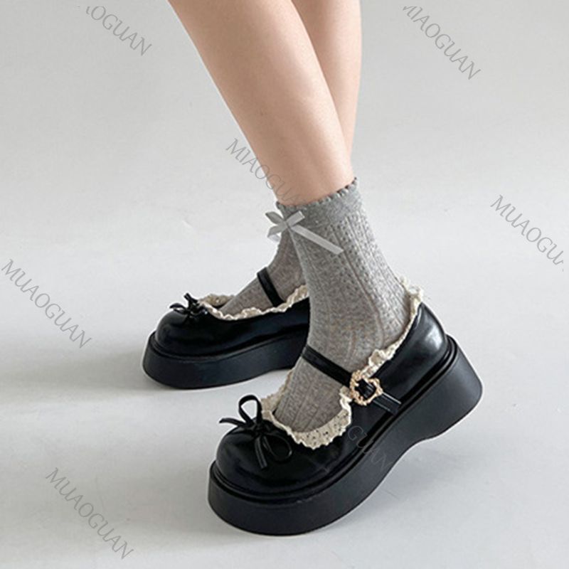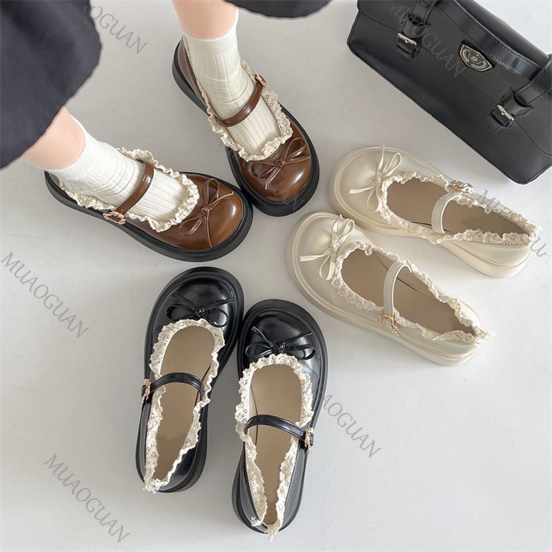 French Brown Round Head Thick Bottom Lolita Shoes New Spring Shallow Mouth Mary Jane Single Shoes Casual Lace Flat Bottom Loaers