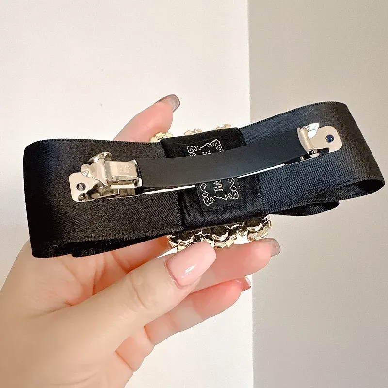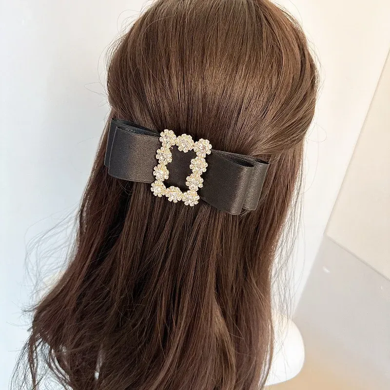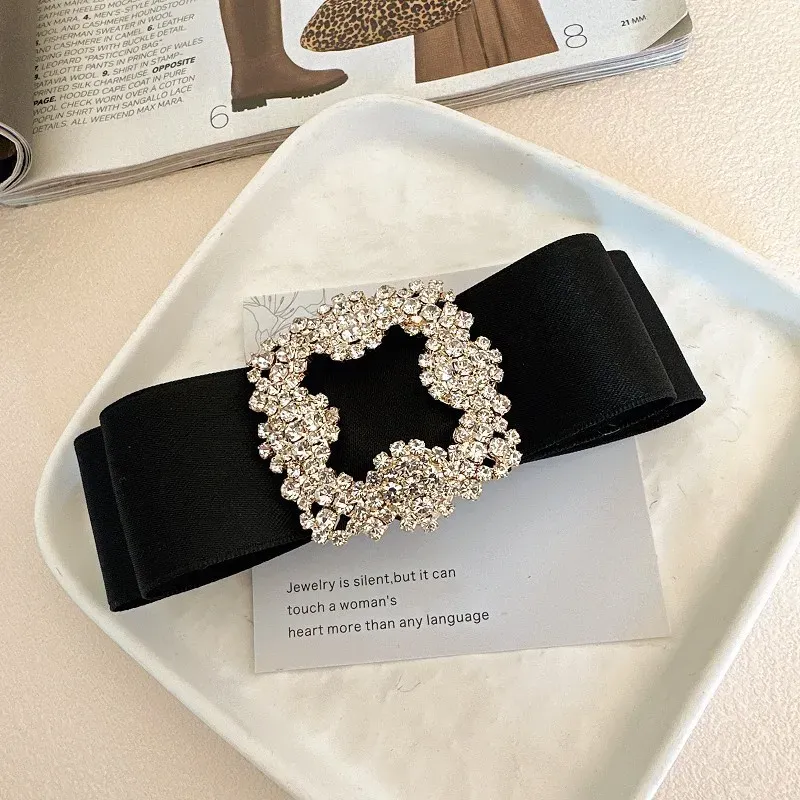 French Fabric Bow Hair Clip for Girls Crystal Rhinestone Hairbow Elegant Luxury Jewelry Hairpin Korean Headwear Hair Accessories