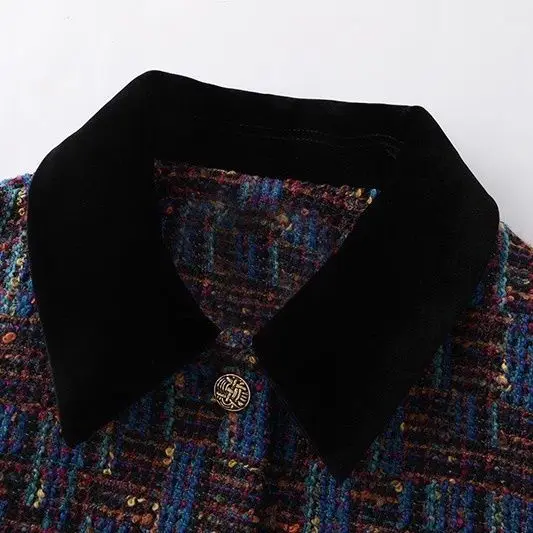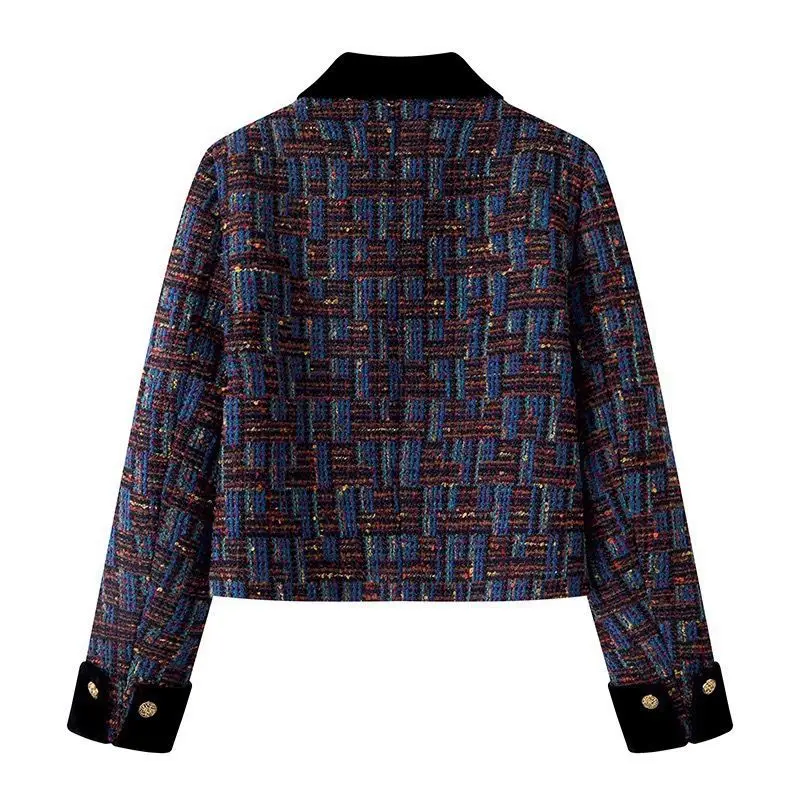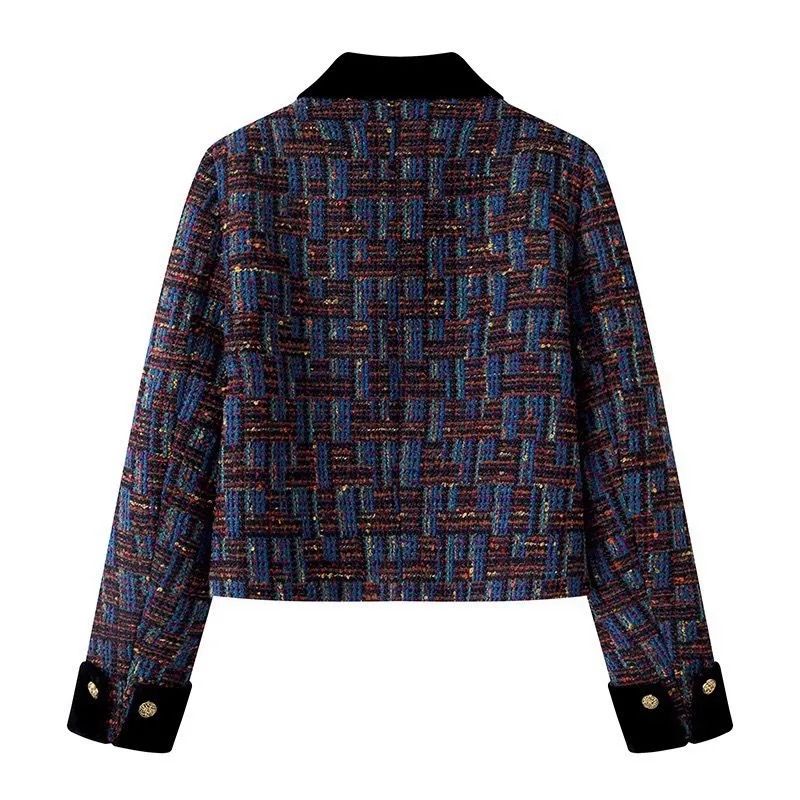 French retro color contrast small fragrant wind short coat women 2026 spring autumn new slim tweed temperament top female