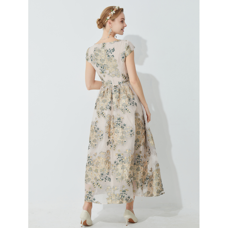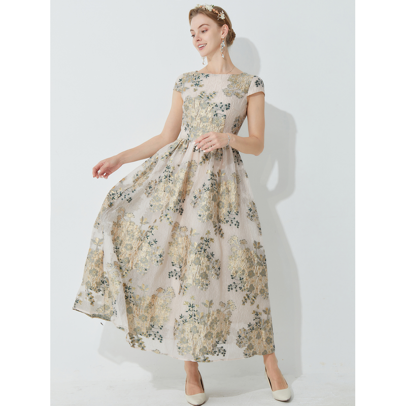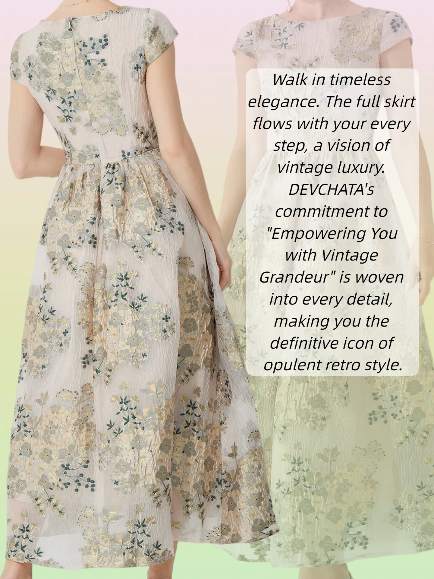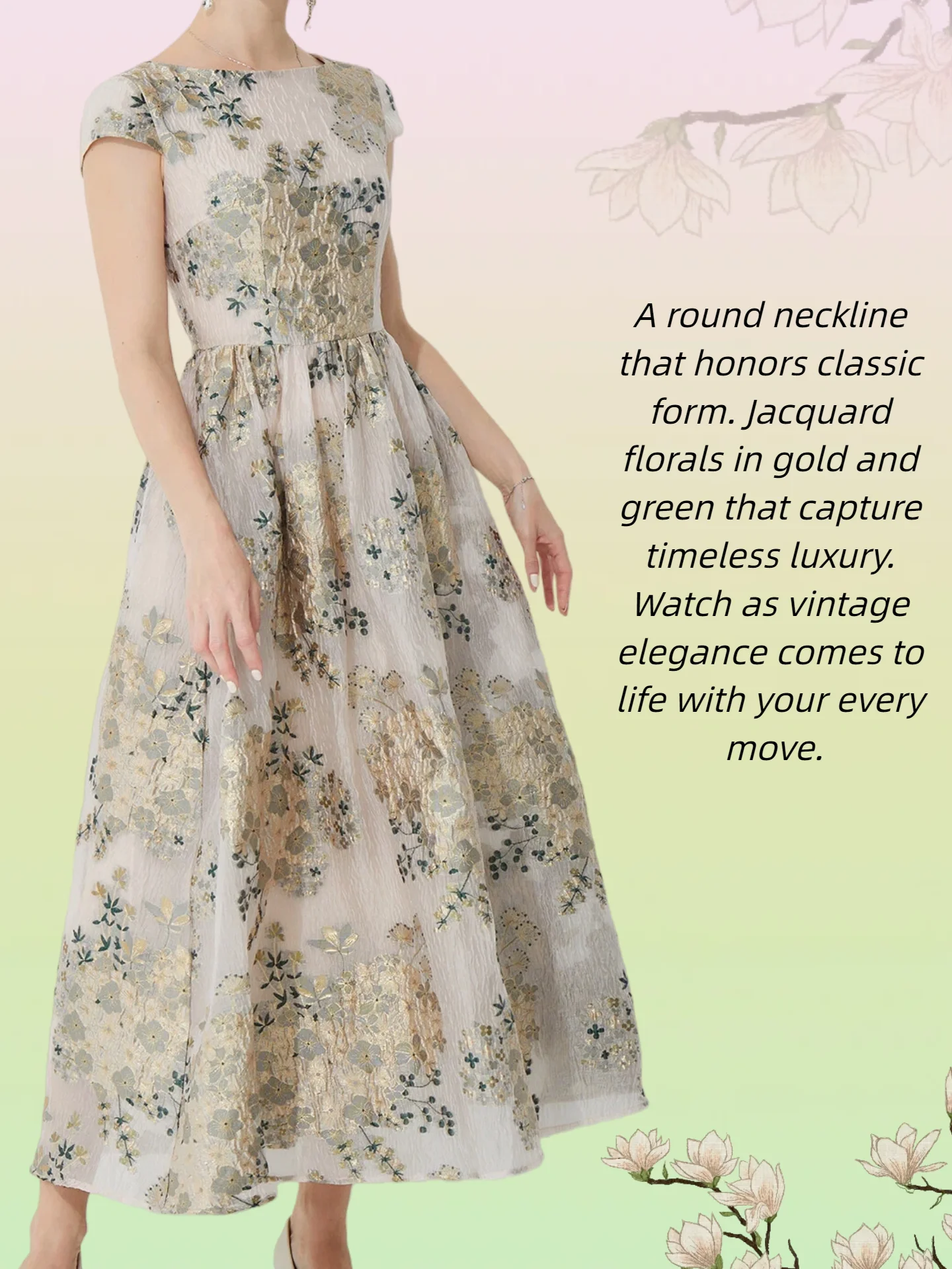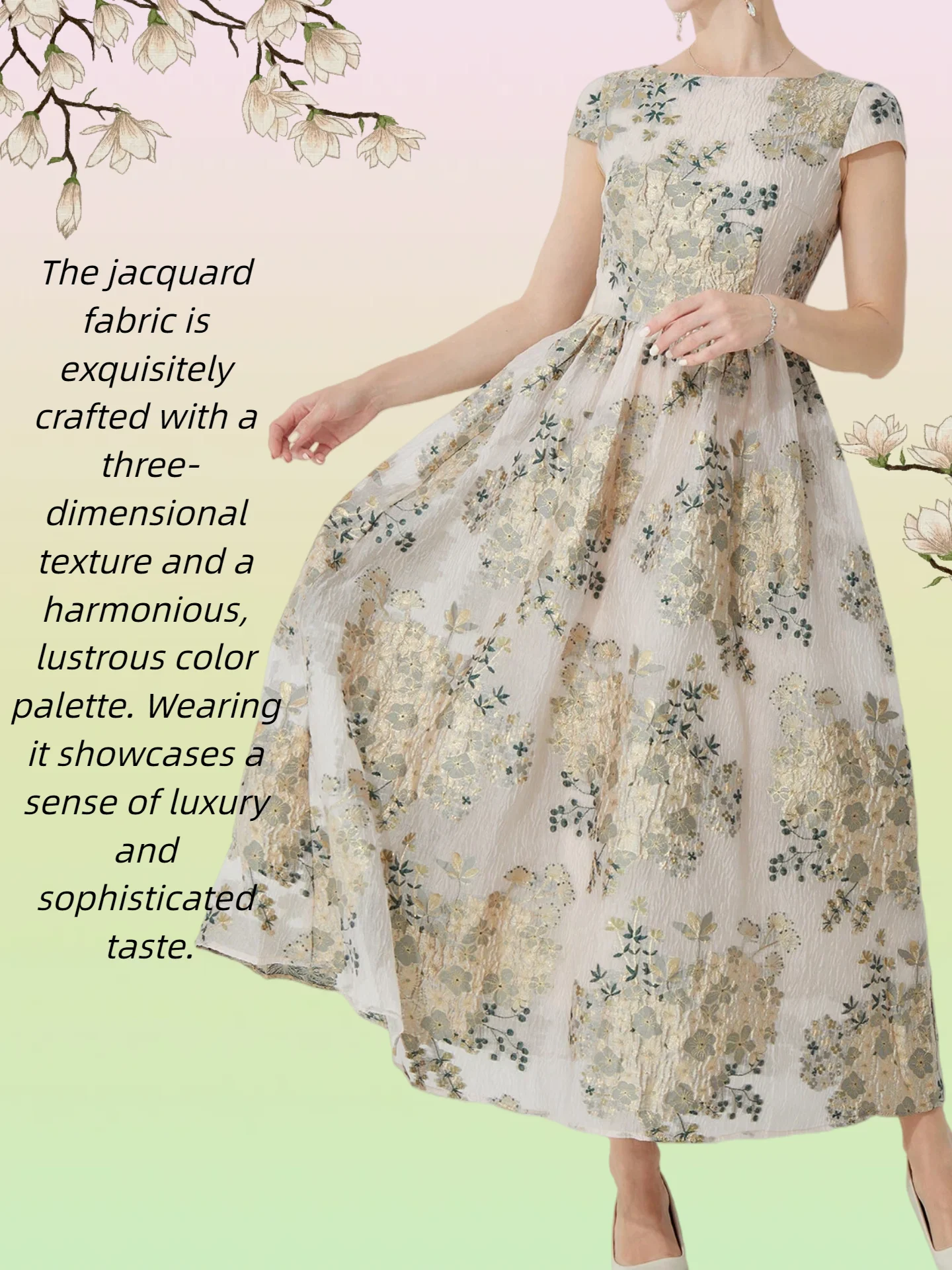 French Retro Formal Dress Jacquard Waist-Cinching Full-Skirt Long Gown - Luxury Celebrity Style Evening Banquet Elegant Dress