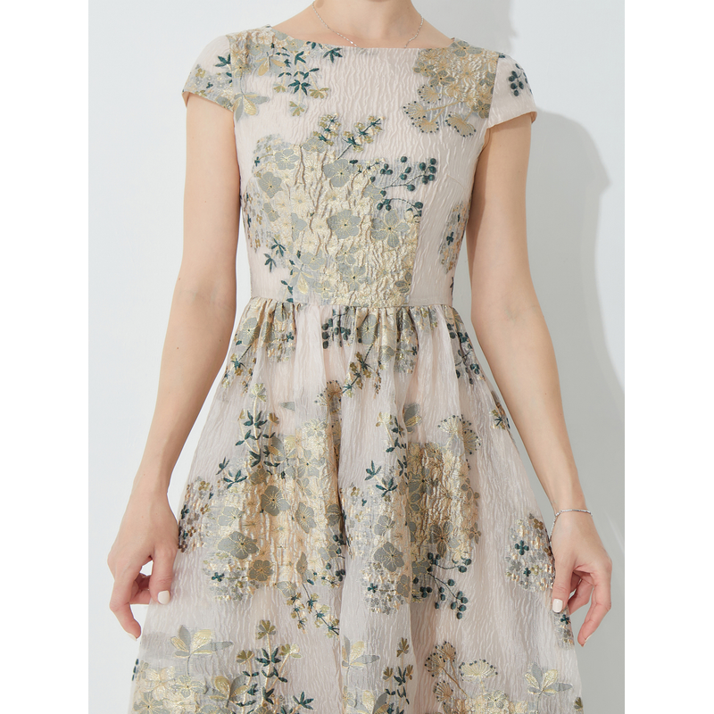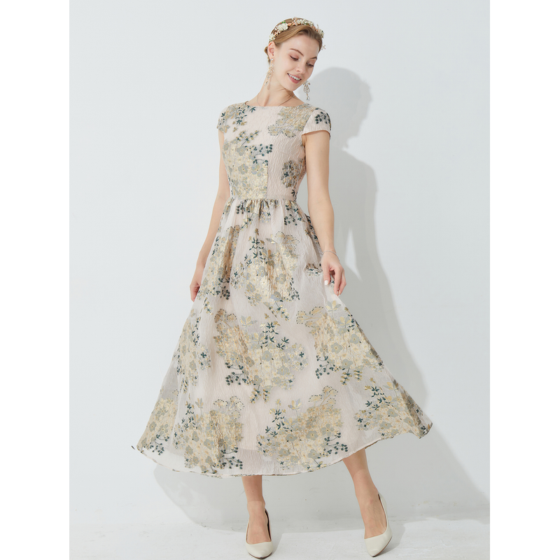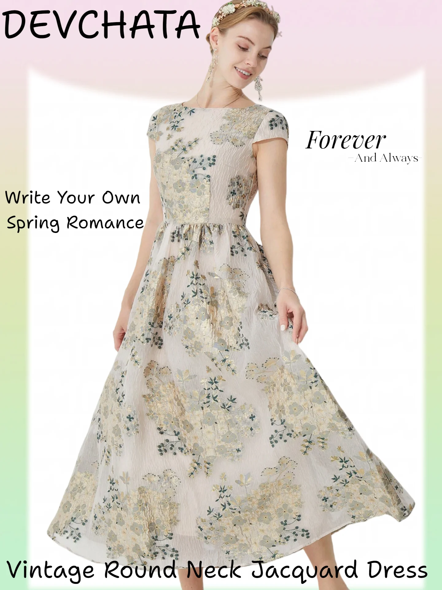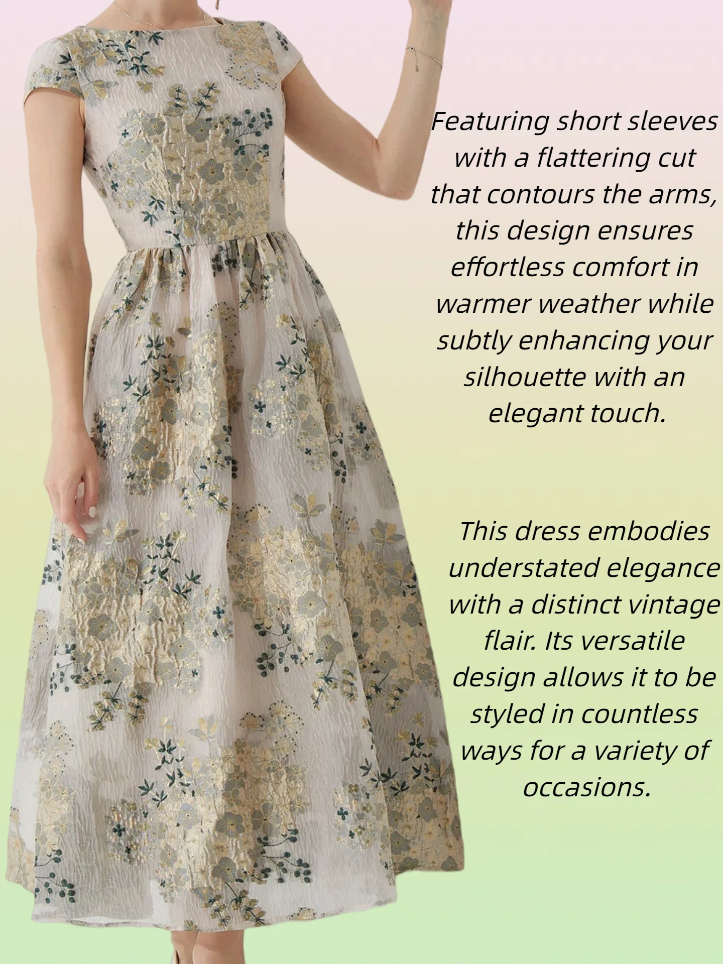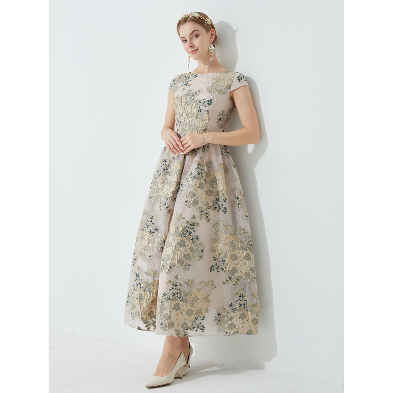 French Retro Formal Dress Jacquard Waist-Cinching Full-Skirt Long Gown - Luxury Celebrity Style Evening Banquet Elegant Dress