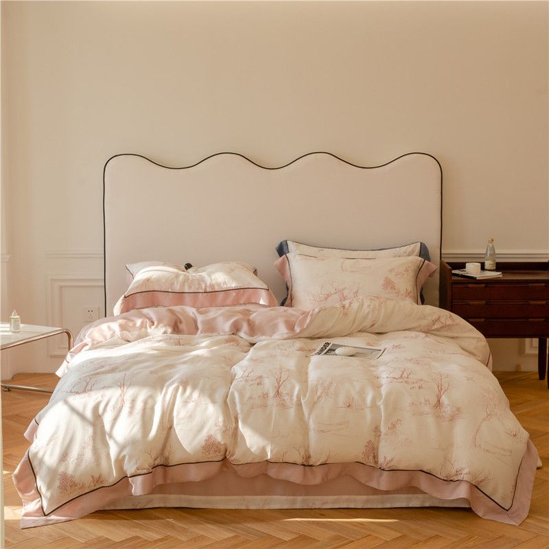 French Rose Light Luxury Lenzing Tencel Four-piece Set Juicy powder 1.5m fitted sheet