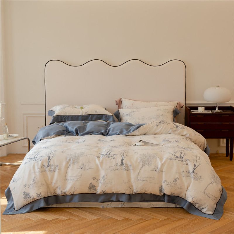 French Rose Light Luxury Lenzing Tencel Four-piece Set Monets Garden 1.8m fitted sheet 220x240cm