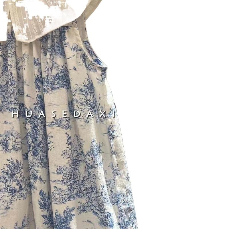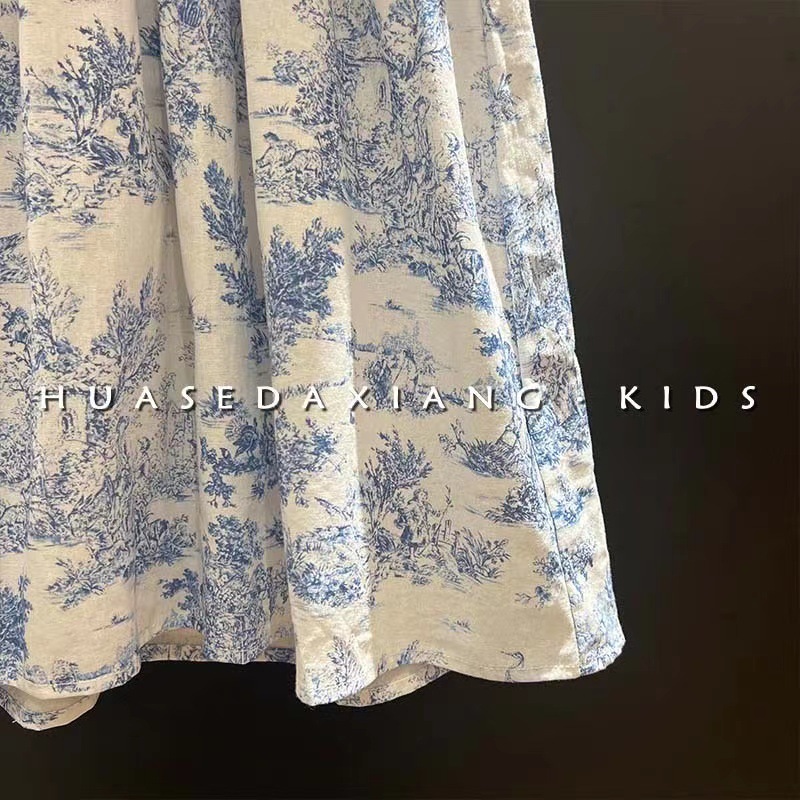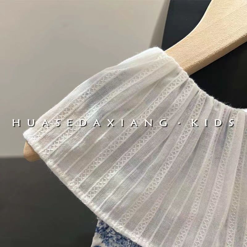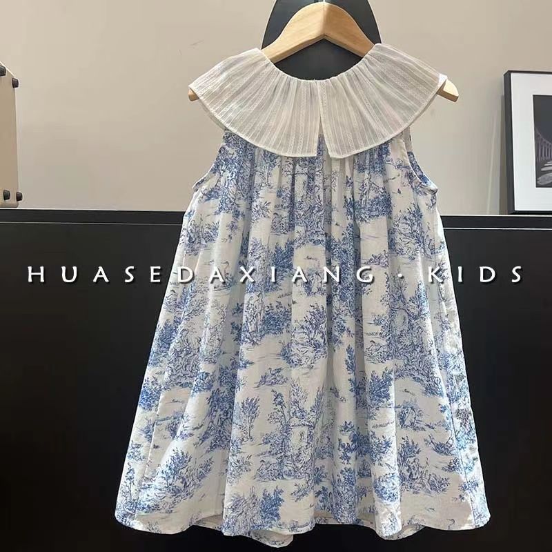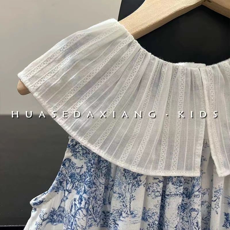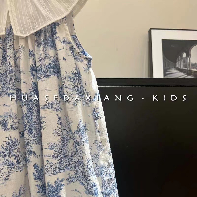 Frock For Girl Dress Retro Lotus Leaf Collar Ink Painting Tank Top Skirt Flower Baby Girl Dresses 1 2 4 6 8 9 10 11 Kids Clothes