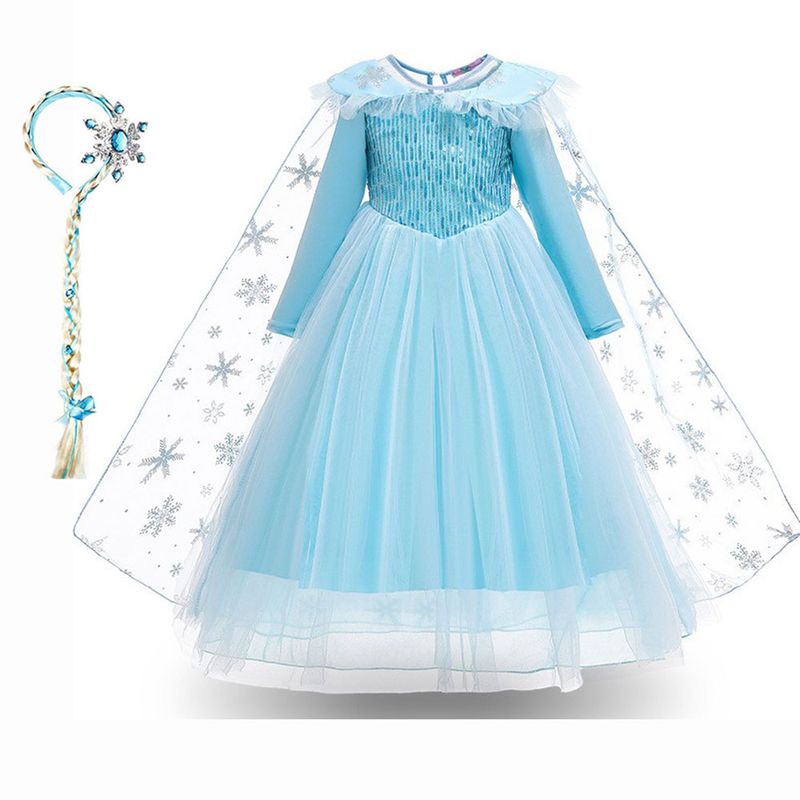 Frozen Girls Elsa Cosplay Long Sleeves Dress Fancy Costume Girl Snow Queen Halloween Birthday Party Children Princess Clothes