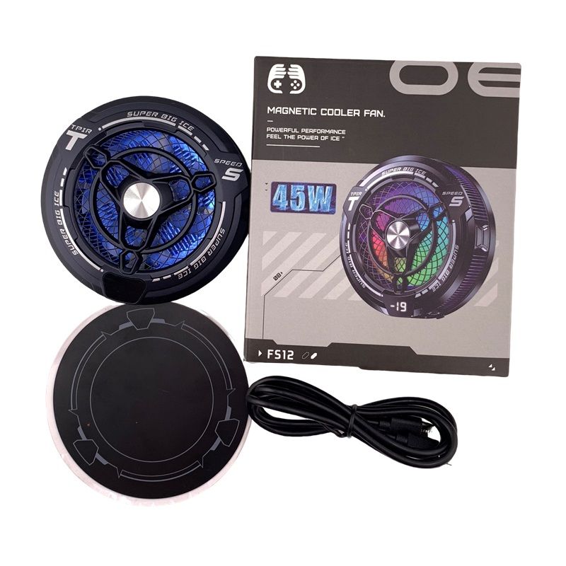 FS12 45W Semiconductor Tablet Cooler Large Area Powerful Cooling Magnetic RGB Phone Cooler for Pad/Gaming Phones with Lights