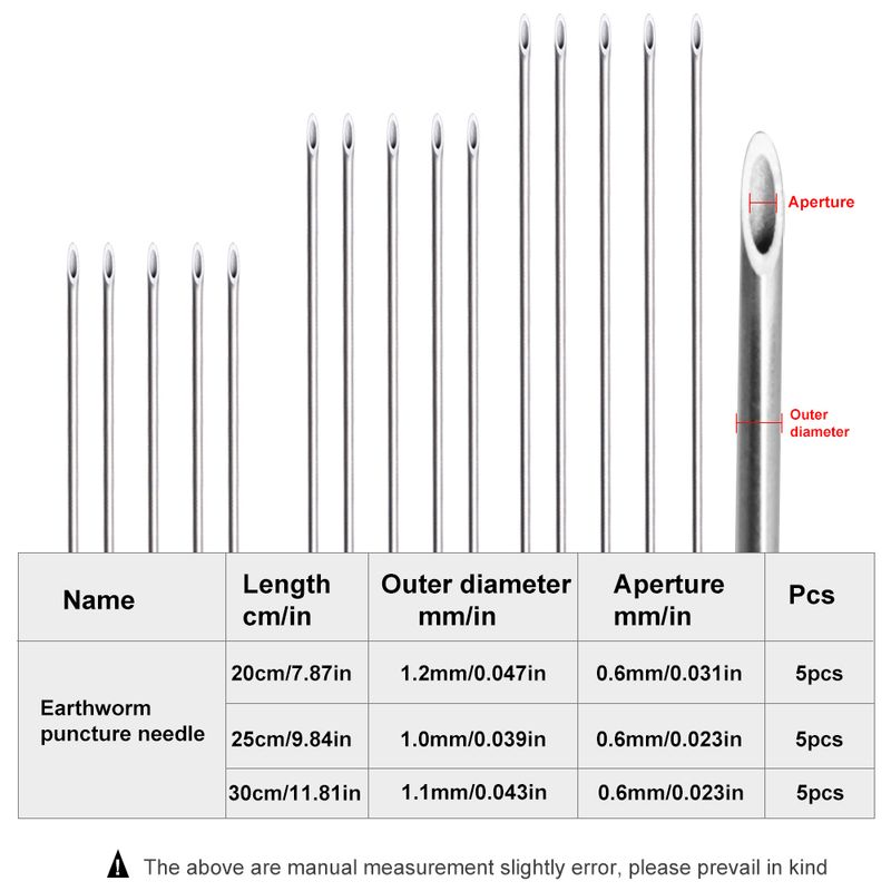 FTK 5PCS Earthworm Hooking Needle Stainless Steel Hollow Gas Needle Driller Fishing Tools Quick Earthworm Hooking Needle
