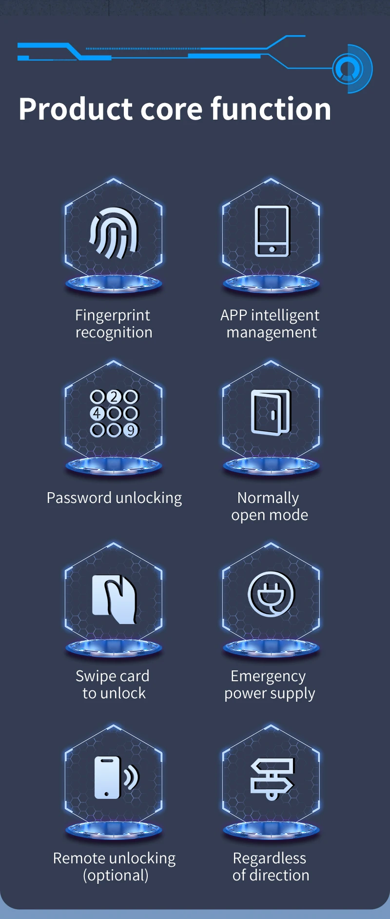 Fingerprint recognition /APP intelligent management/normally open mode