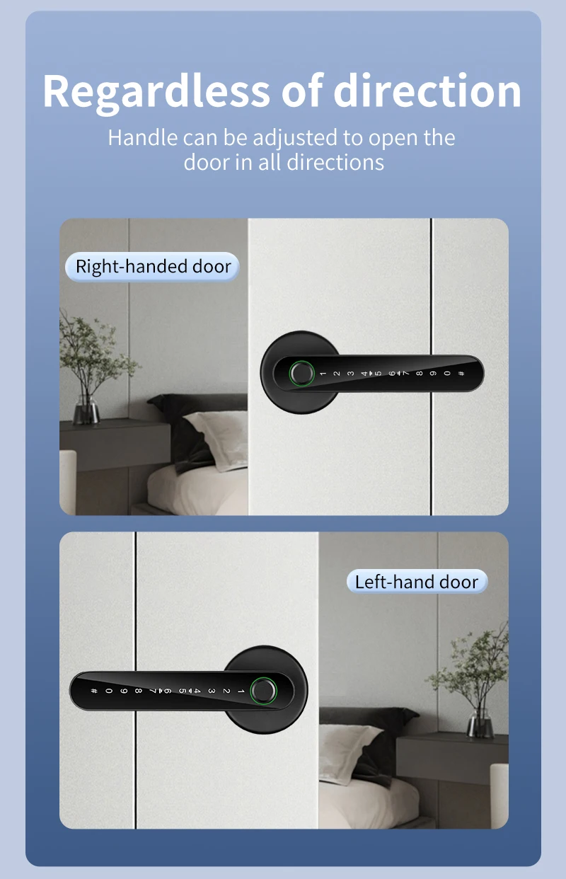 FUERS Tuya Smart Fingerprint Door Lock Handle With Fingerprint Password Bluetooth Key Swipe Card Remote Unlock Four Ways To Open