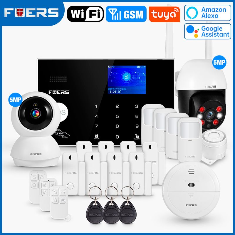 FUERS WIFI GSM Alarm System Wireless Home Burglar Security Alarm System Tuya APP Control Siren Motion Detector PIR Smoke Sensor