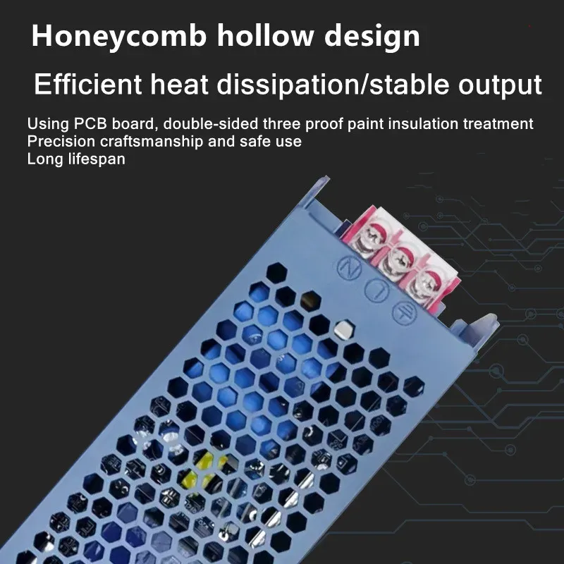 -> This power supply is specially designed for LED lighting, such as: light box billboards, shop signs, home decoration lighting, LED light strips, LED lighting drivers, luminous characters, light box posters, line lights, LED wine cabinet lights etc.