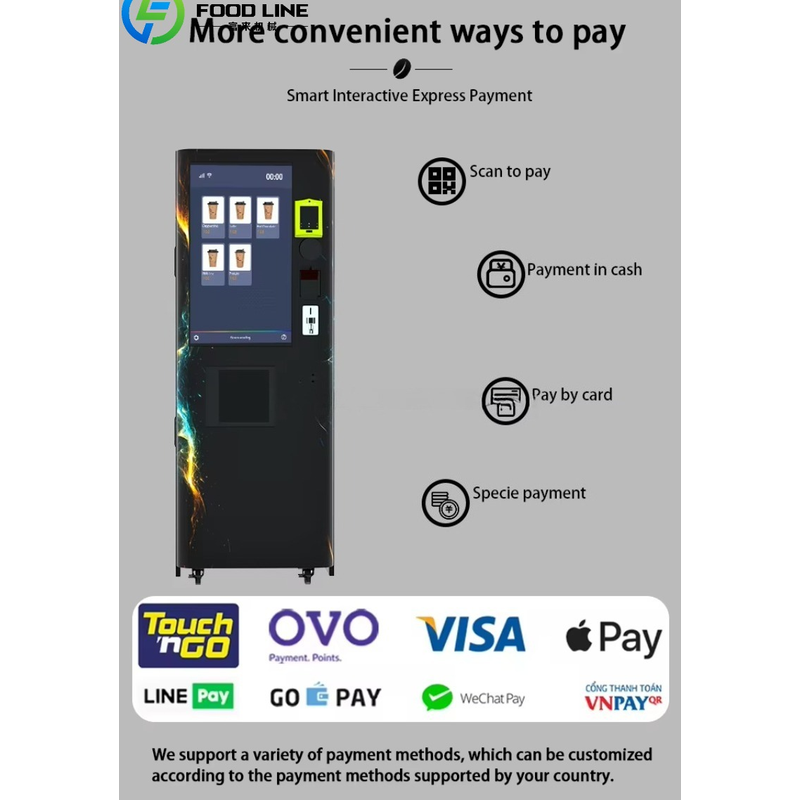 Food machines such as dining carts, pizza machines, cotton candy machines, ice cream machines, popcorn machines, vending machines, etc.