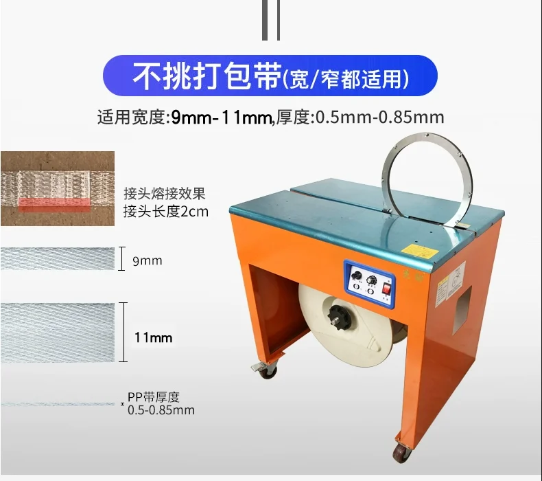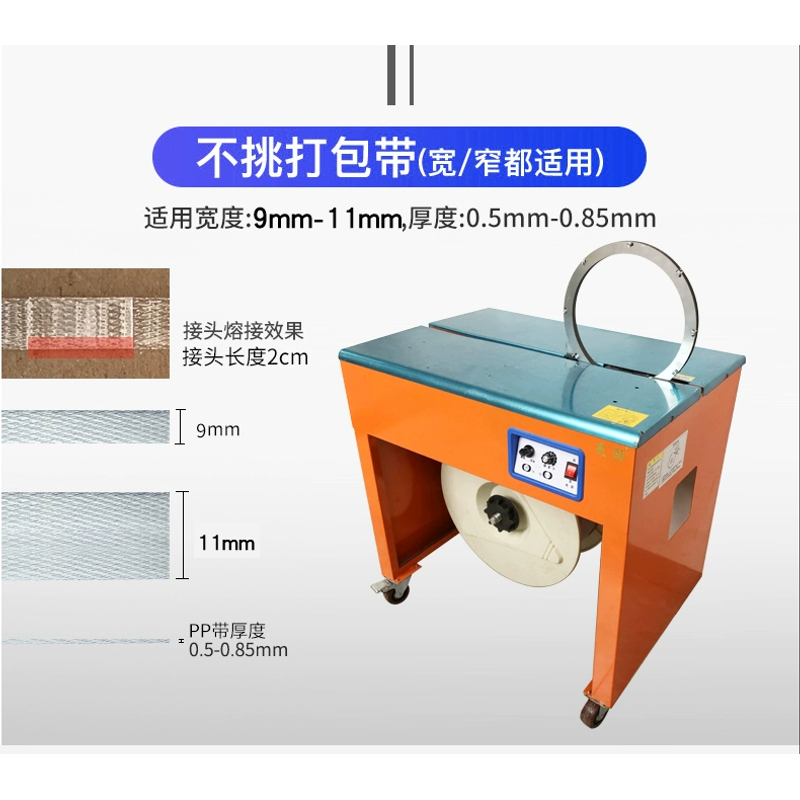 This machine is suitable for strapping and baling of hardware, wooden products, paper boxes, medicine boxes, vermicelli, rice noodles, rice vermicelli, curtains, carpets, ropes, etc.