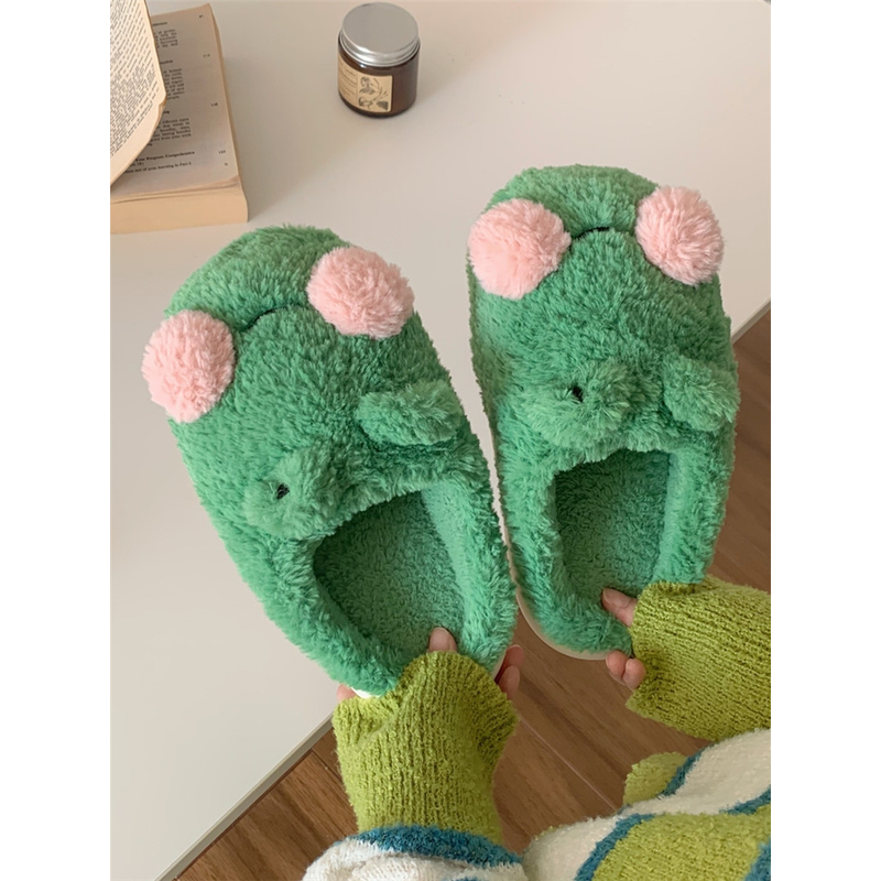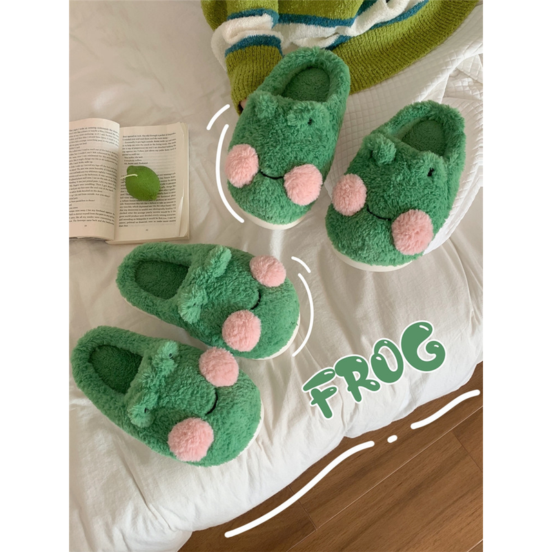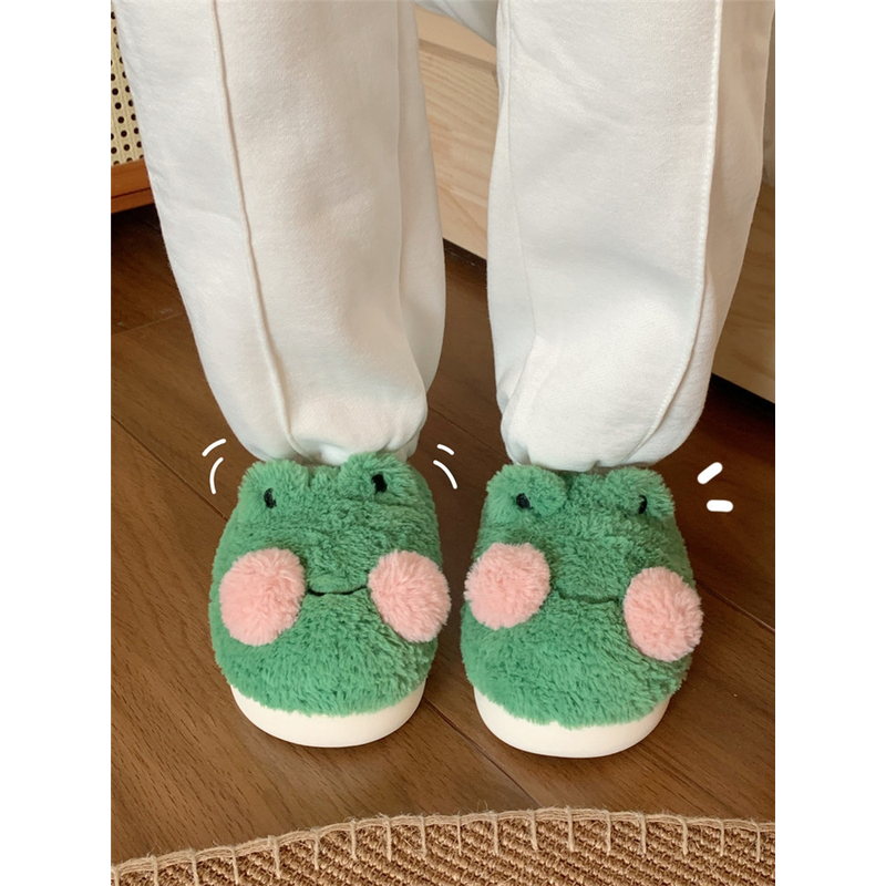 Funny Couple Lovely Frog Cotton Slippers 2022 Winter Student Anti Slip Warm Plush Home Slipper Men And Women Household Shoes