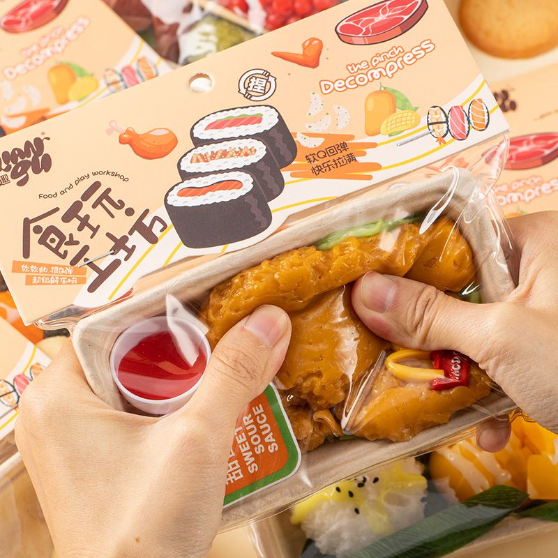 Funny Simulation Food Fidgets Toys Sushi Fruit Mochi Squishy Sensory Toy for Kids Adults TPR Squeeze Stress Relief Abreact Toy