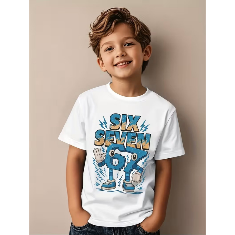 Funny Six Seven Italian Brainrot 67 Number Graphic Print T-Shirt Boy/Girl Summer Short Sleeved Kids Loose Comfortable Tshirt Top