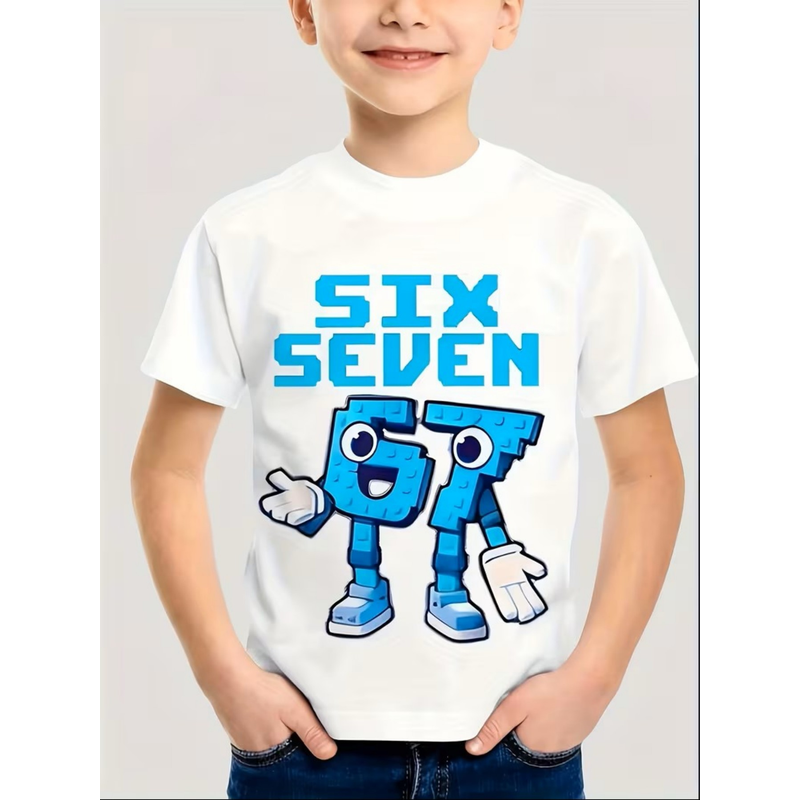 Funny Six Seven Italian Brainrot 67 Number Graphic Print T-Shirt Boy/Girl Summer Short Sleeved Kids Loose Comfortable Tshirt Top
