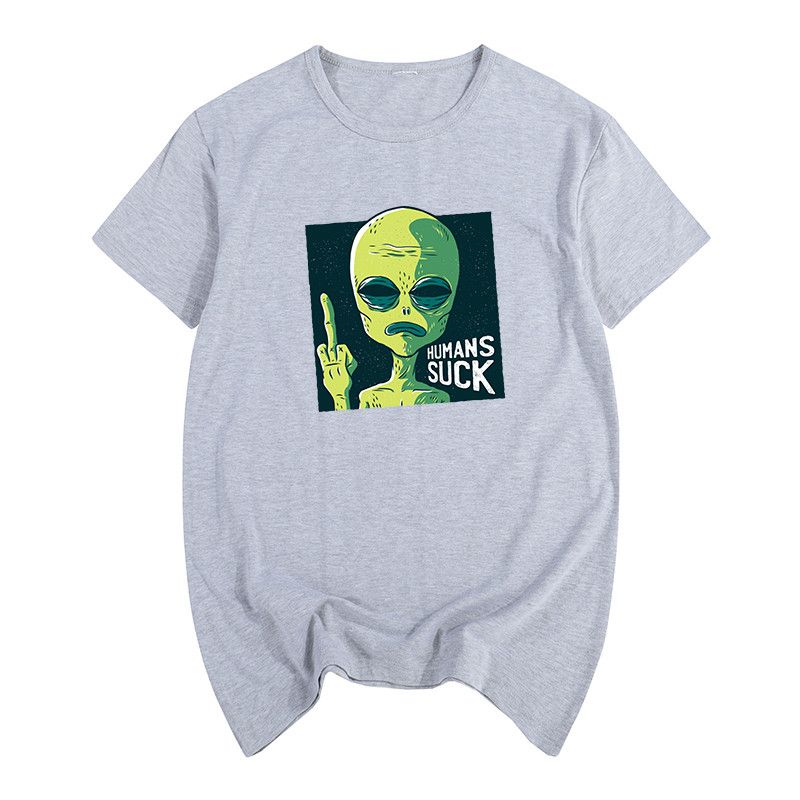 Funny Spoof Cartoon Short-sleeved T-shirt For Men And Women Grey 2XL