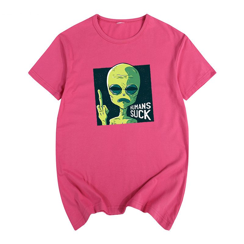 Funny Spoof Cartoon Short-sleeved T-shirt For Men And Women Rose Red M