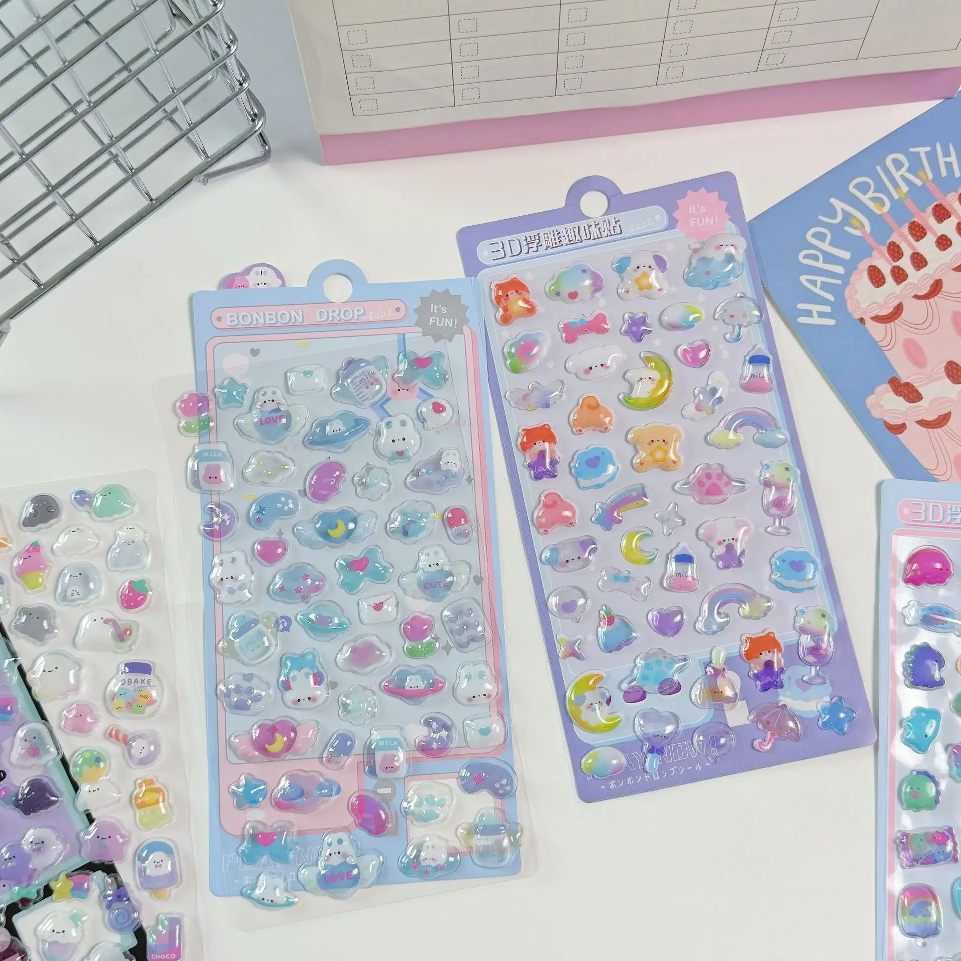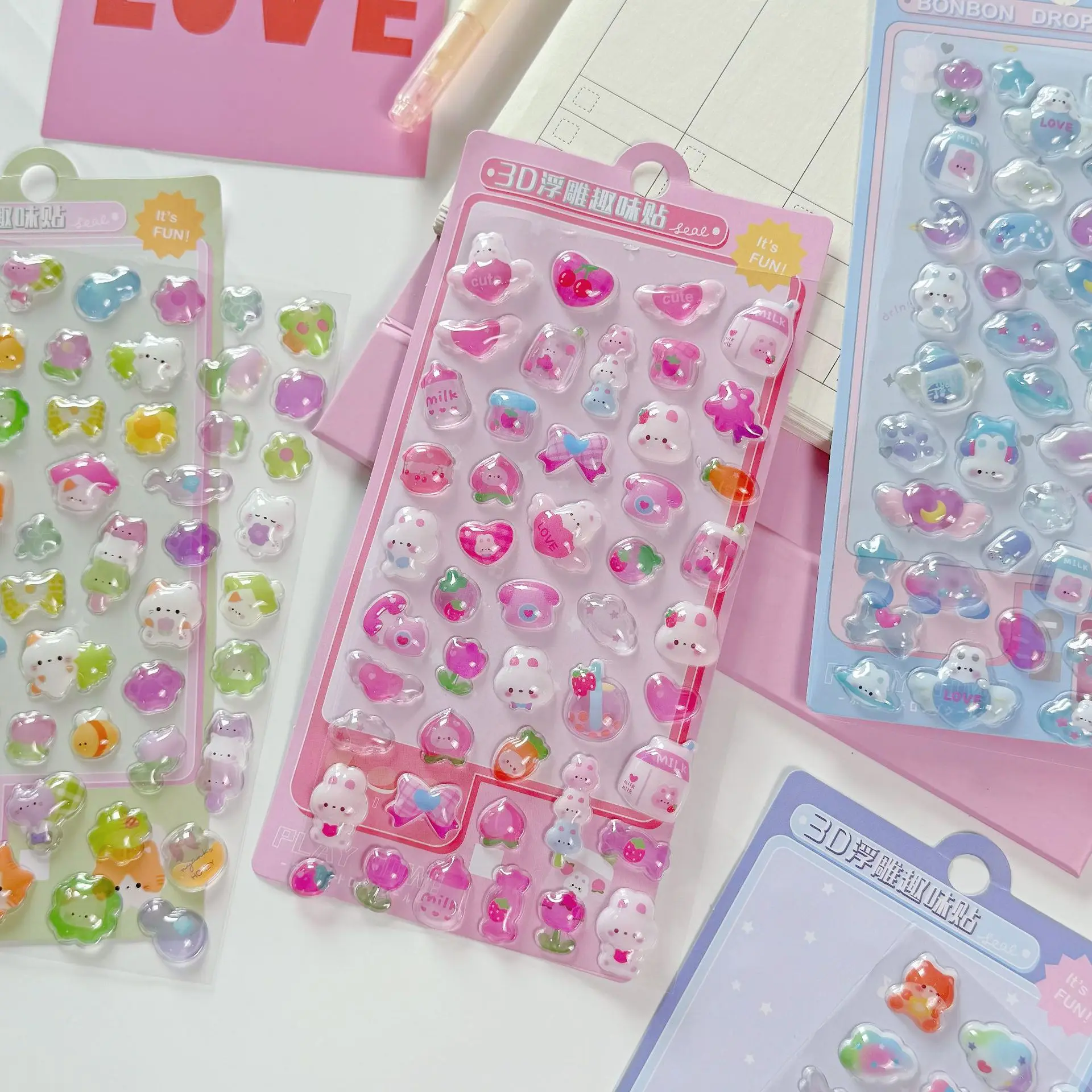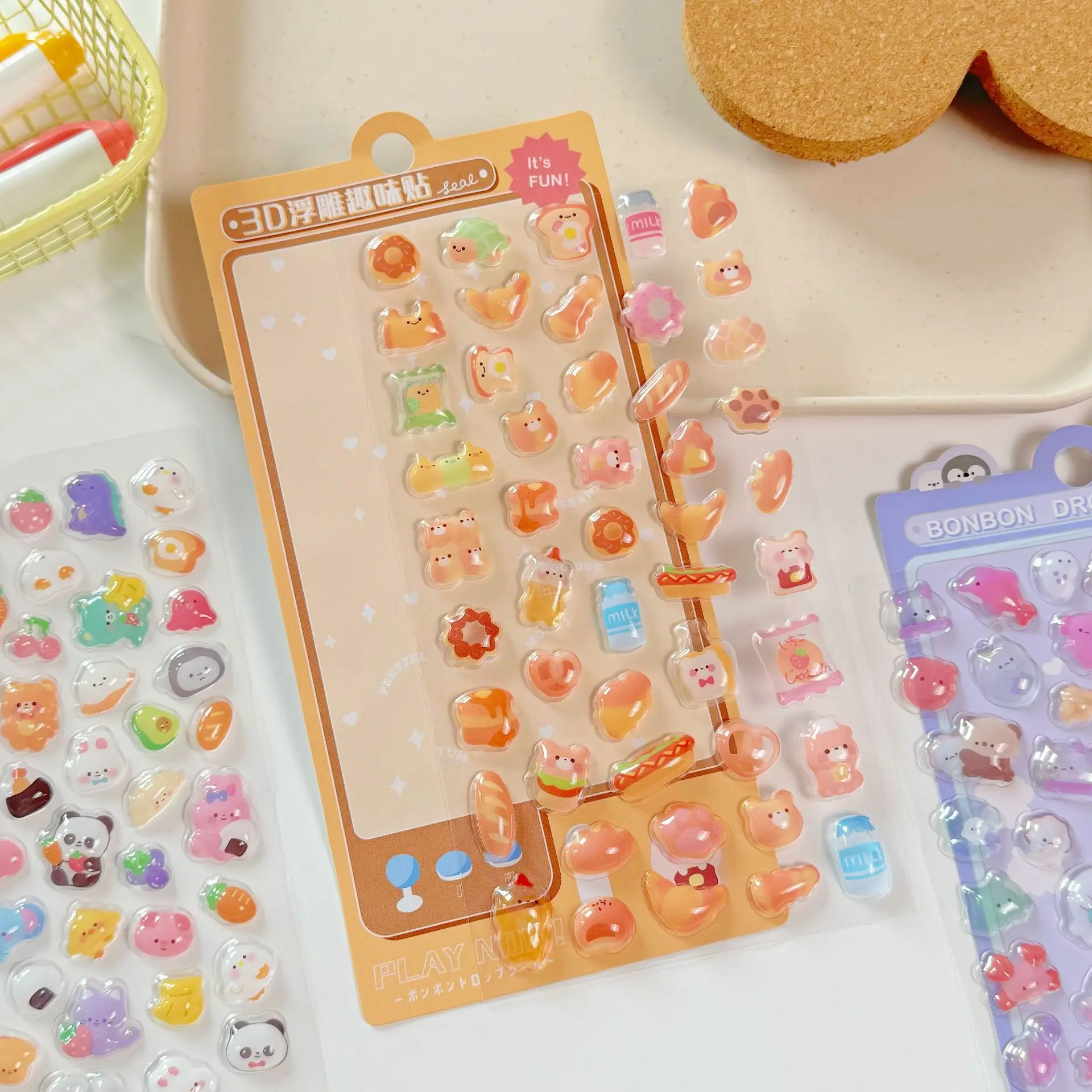 Funny Sweet Furit Ice Cream Pets Drop 3D Relief Sticker Scrapbooking Diy Diary Decor Journaling Stationery Kawaii Stickers