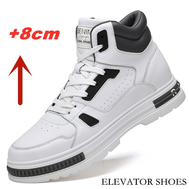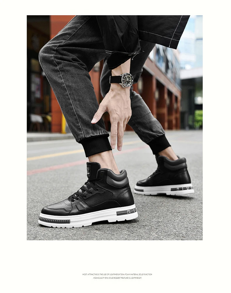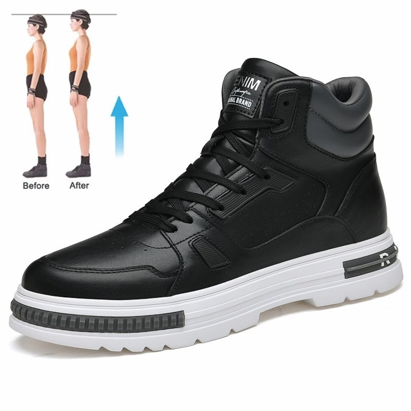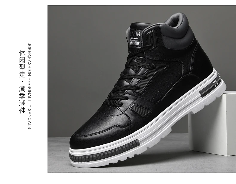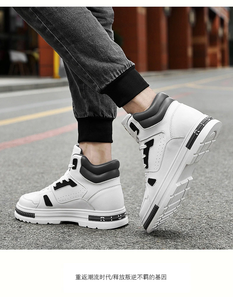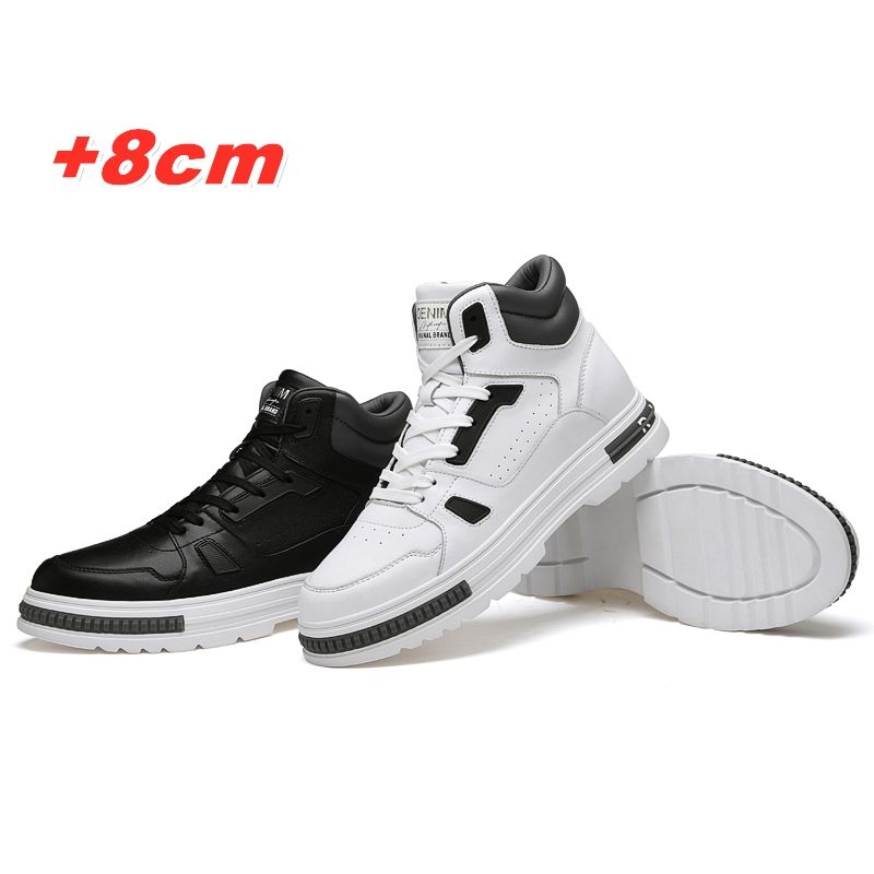 FUQIAO New High Top Elevator Shoes Casual Men Sneakers Heightening Height Increase 8cm Cow Split Leather Leisure Designer Shoes