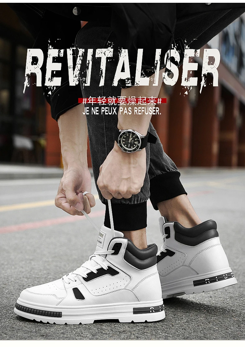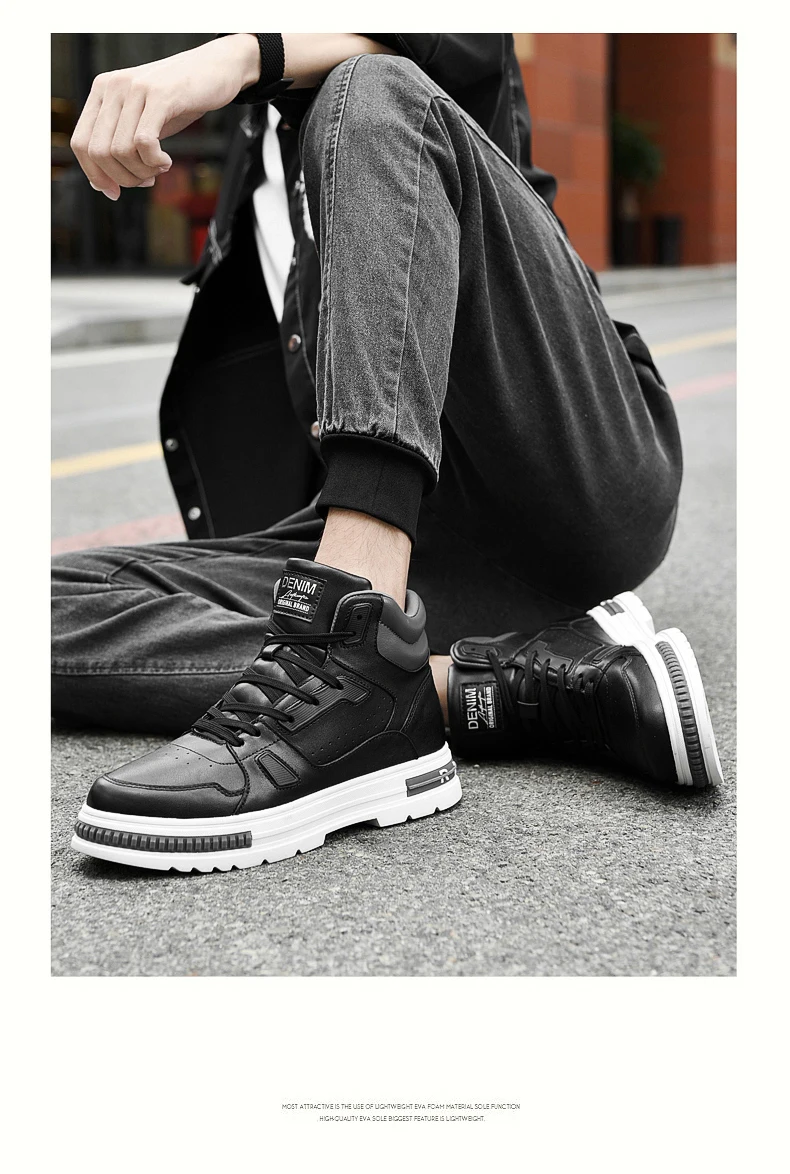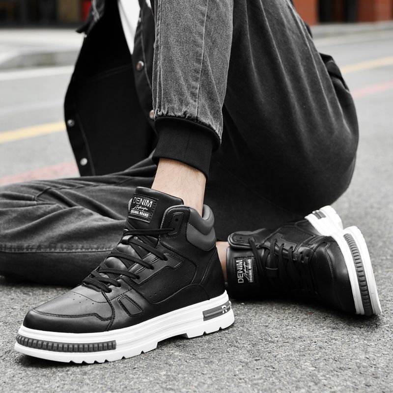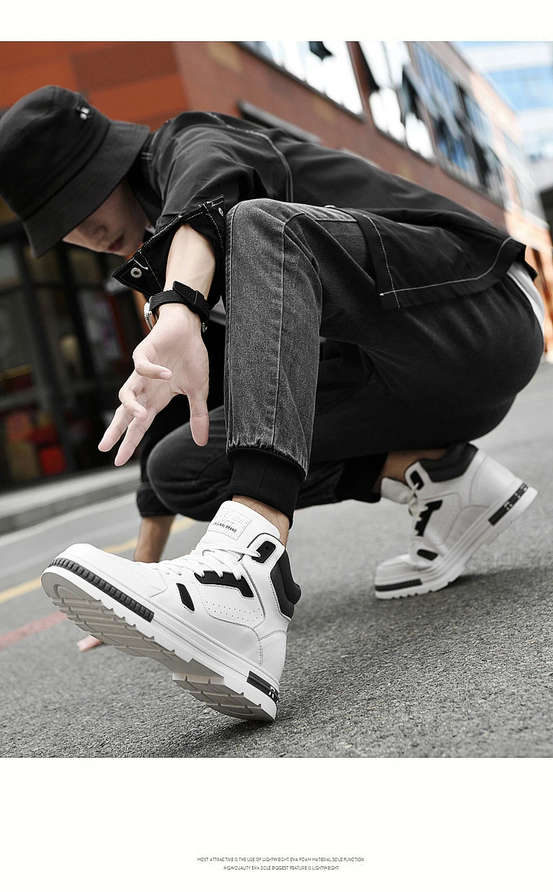 FUQIAO New High Top Elevator Shoes Casual Men Sneakers Heightening Height Increase 8cm Cow Split Leather Leisure Designer Shoes