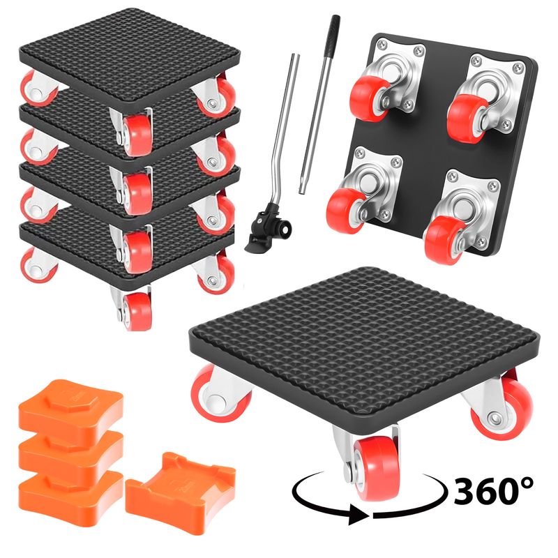 ①Vlihapy heavy-duty furniture lifter set includes 4 sliders with 360° rotating wheels, 1 63cm Extended carbon steel pry bar lifter, and 4 20mm anti-slip mats is ideal for transporting furniture, plants, moving boxes, etc.
