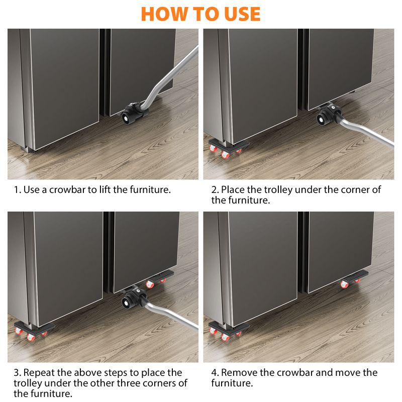 ⑦This furniture moving kit is ideal for a variety of items, including beds, sofas, tables, cabinets, refrigerators, and washing machines. Suitable for use on wooden floors, tile floors, and other hard surfaces, it’s a must-have tool for homeowners, office managers, and moving professionals.