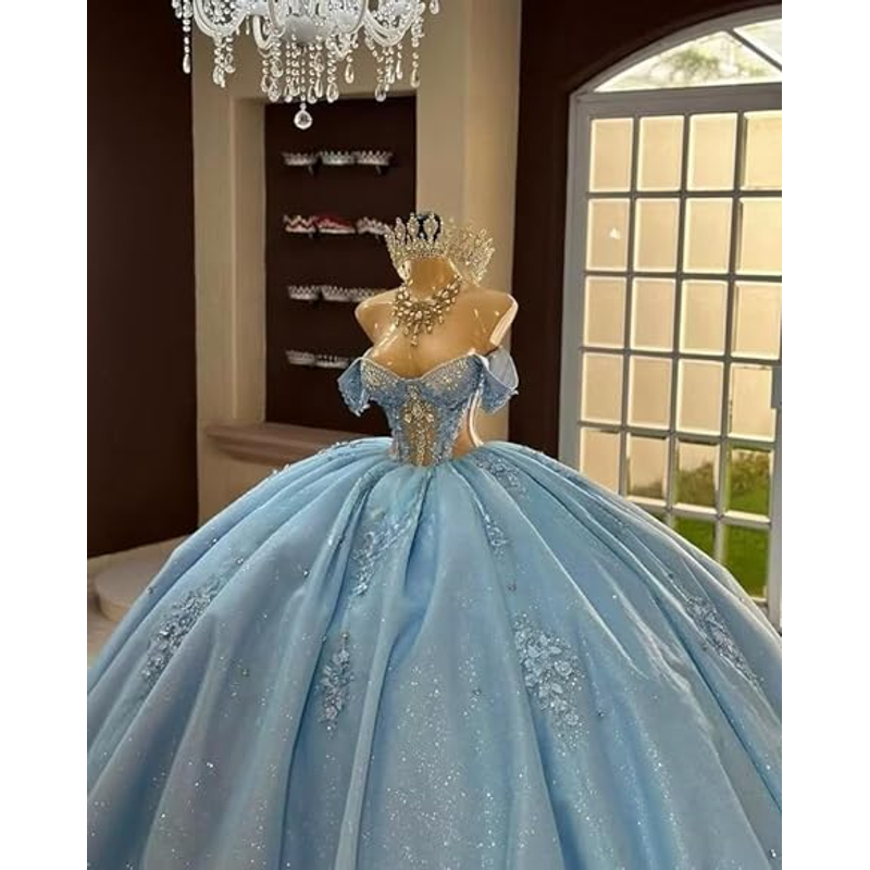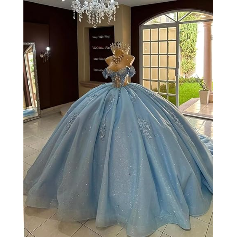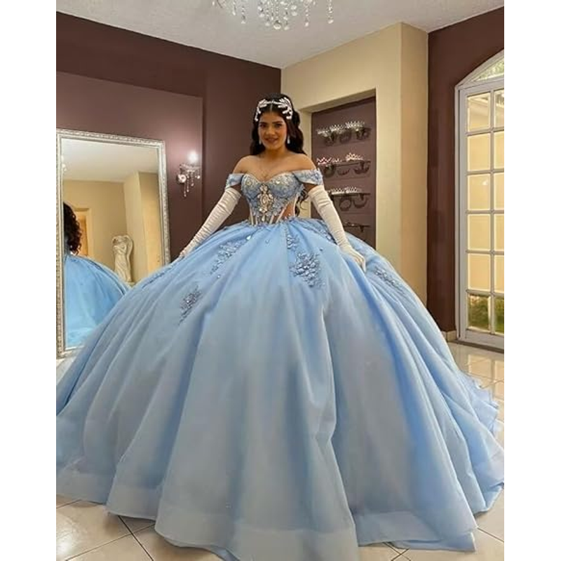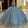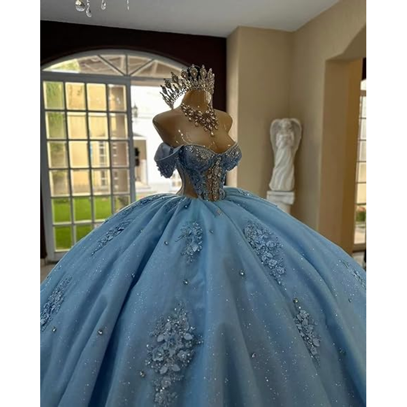 FURSTENBERG Blue Quinceneara Ball Gown Dresses for Women Short Sleeves Floor Length Wedding Party 15 Anos Vestido Customized