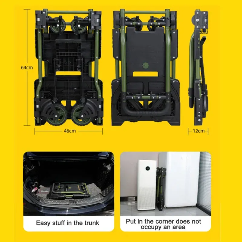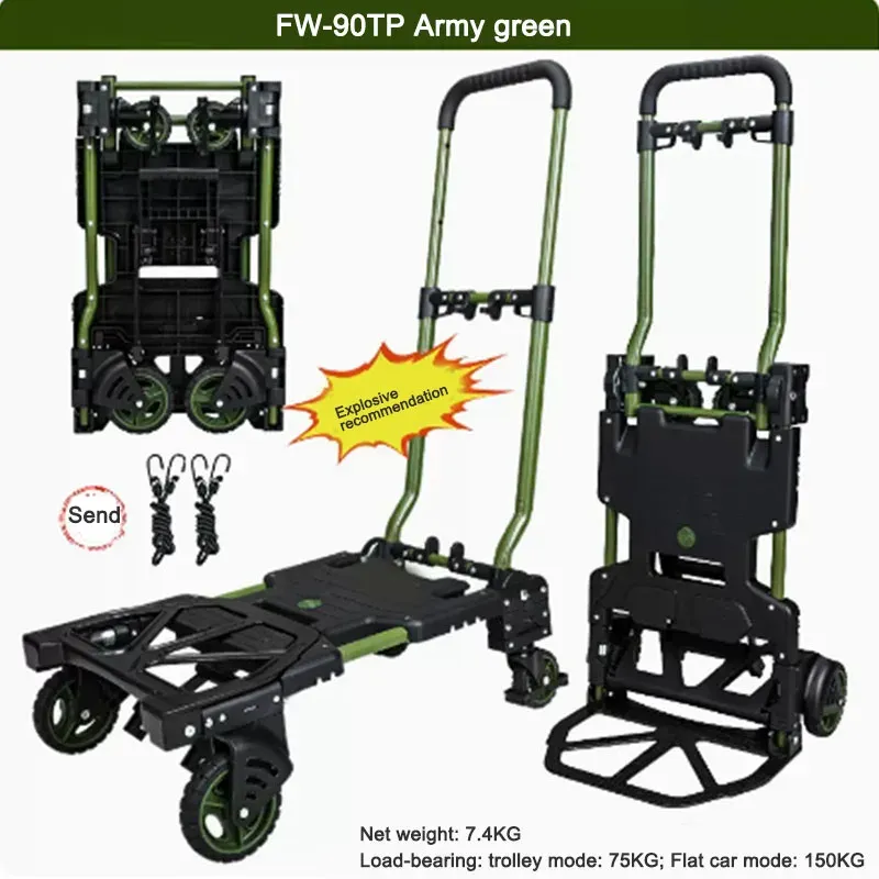 FW-90TP Multifunctional Folding Trolley Portable Handcart Four wheel Flatbed Truck Outdoor Camping Wagon Household Luggage Cart