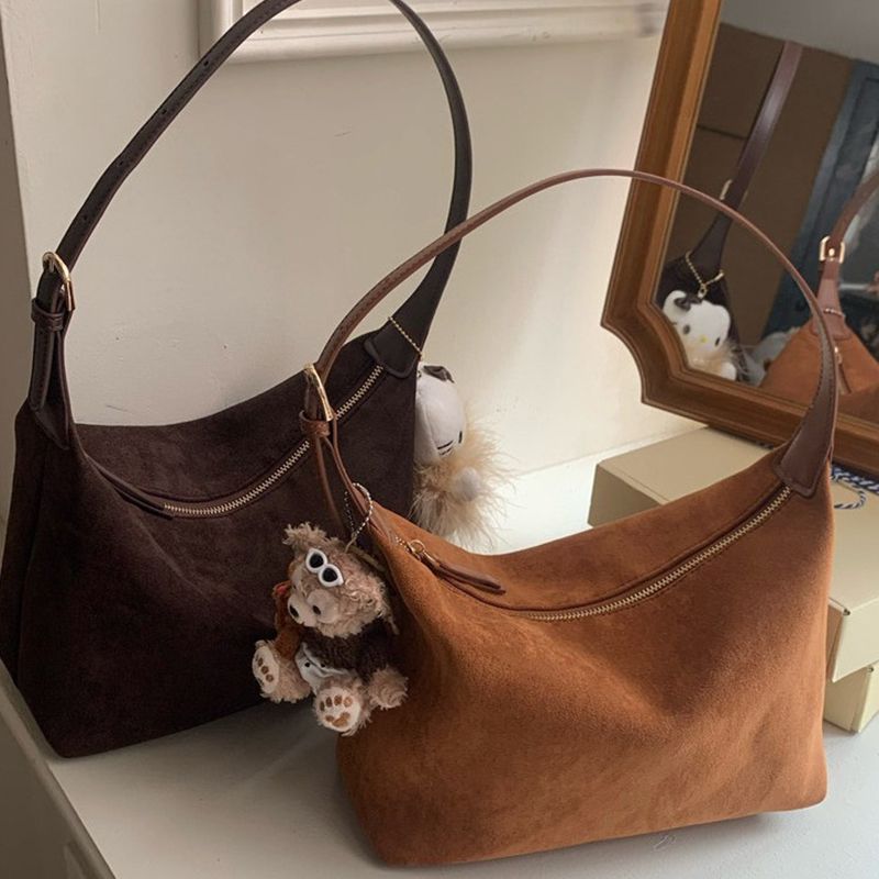 FW New Styles Vintage Women's Bag Chamois Leather Shoulder Bag Simple Commuting Crossbody Bag Hobo Bag For Women Shopping