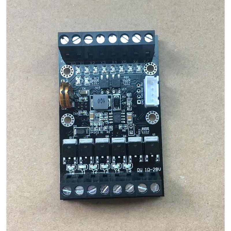 6. This industrial control board can supply power to 10VDC-24VDC, and the selection type is FX1N. Input: X0-X7 a total of 8 points, output: Y0-Y5 a total of 6 points. Maximum memory capacity: 8000 steps (the board has been sprayed with three anti-paints to better adapt to complex application environments)