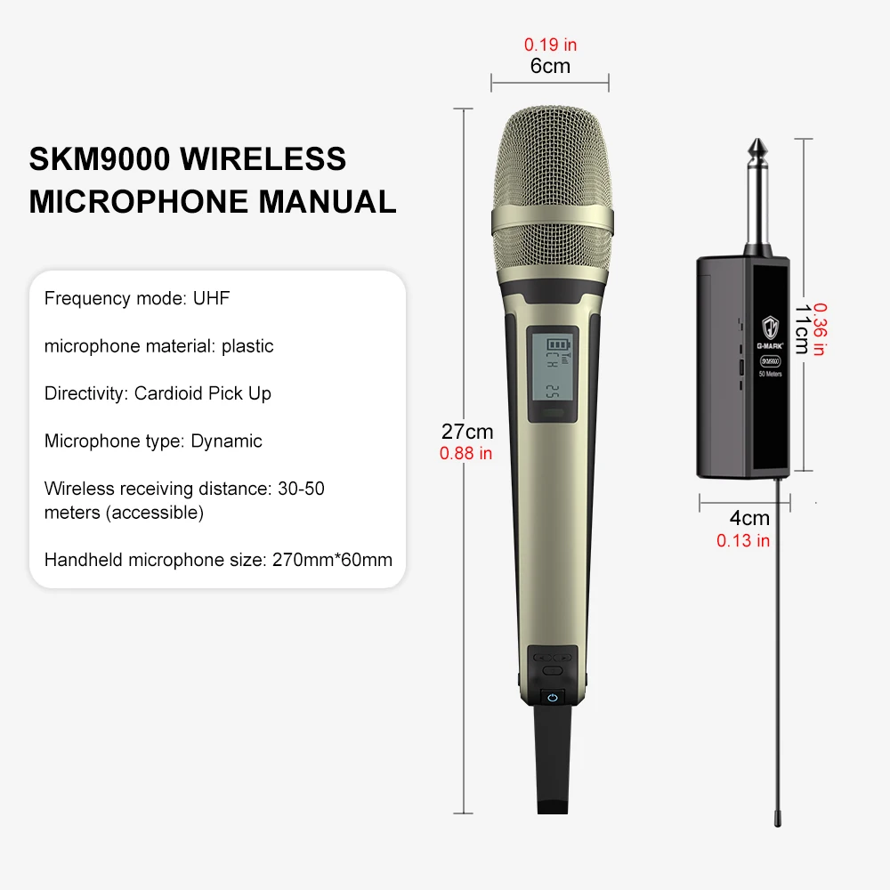 • Professional UHF Microphone :The G-MARK SKM9000 is a professional UHF wireless microphone, perfect for various events such as parties, teaching sessions, and weddings.