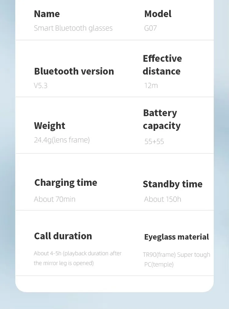 G07 Smart Glasses Anti Blue Light G07-T1 Bluetooth Earphones Vocie Calls Intelligent Eyeglass Music Headset Eyewear