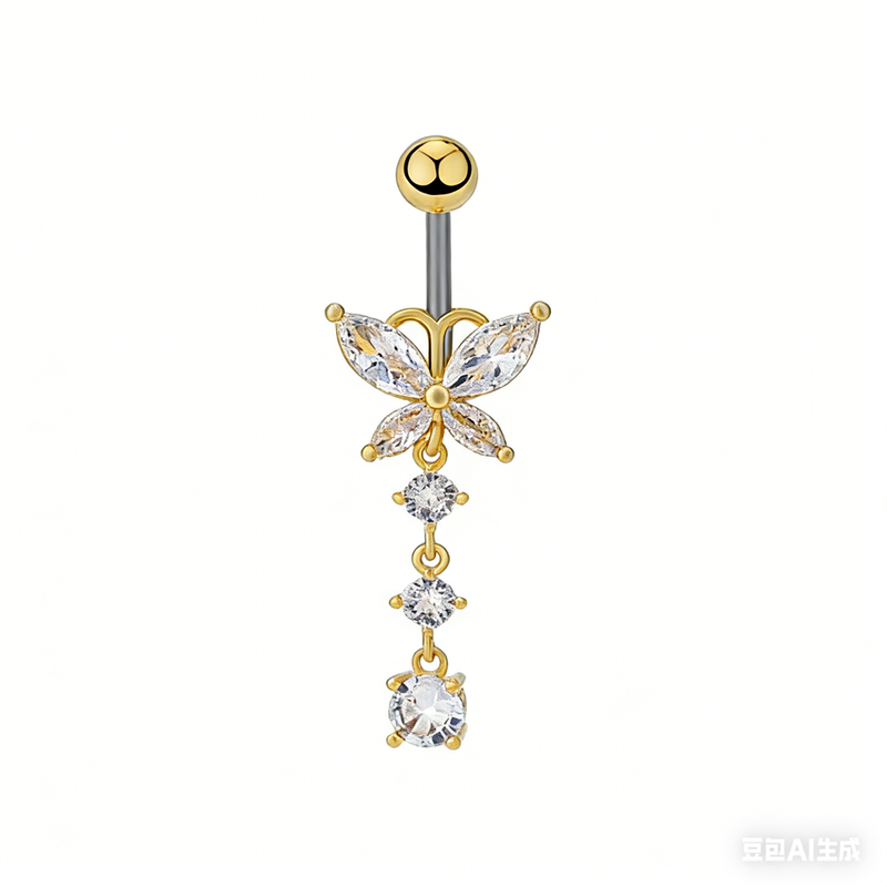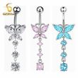 G23titan Crystal Zircon Butterfly Dangle Belly Button Ring Titanium or Steel Bar Navel Piercing Jewelry Women Body Accessories