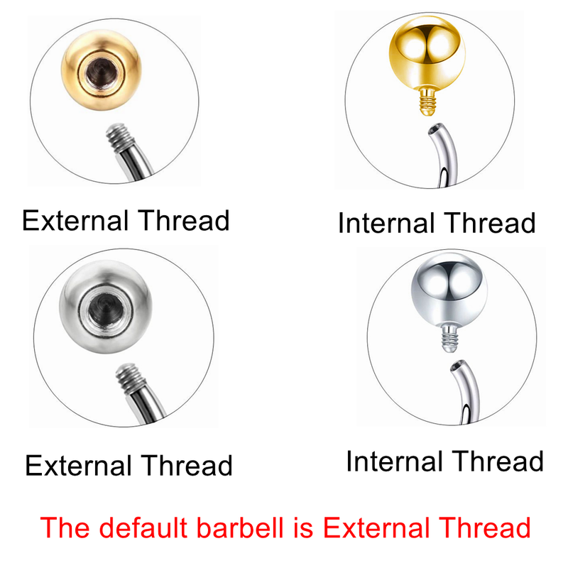 Size: 1.6mm/14G, 6/8/10/12/14/16mm Length External threaded titanium Barbell,8-16mm internally threaded titanium barbell