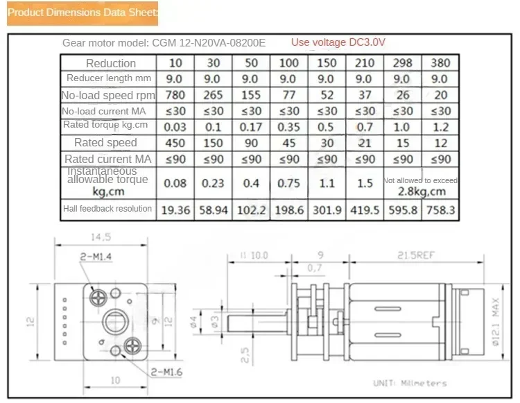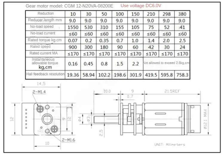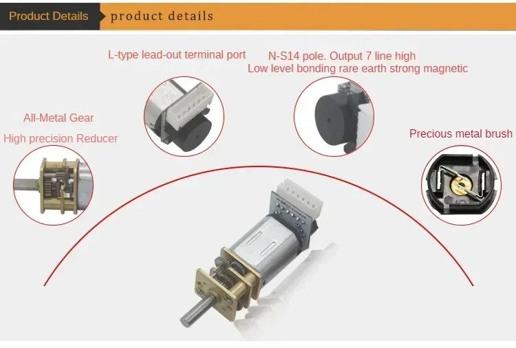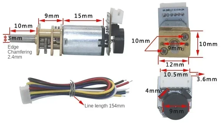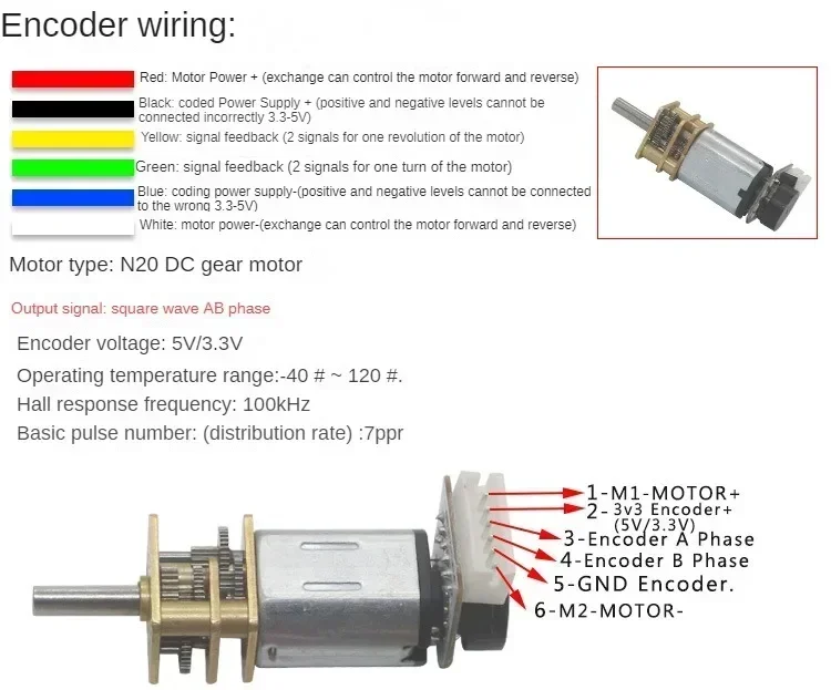 GA12 N20 Encoder DC 6V Mini Micro Metal Gear DC Motor Gearwheel High Torque 15 25 50 70 100 150 300 500 1500RPM 7PPR Hall Sensor
