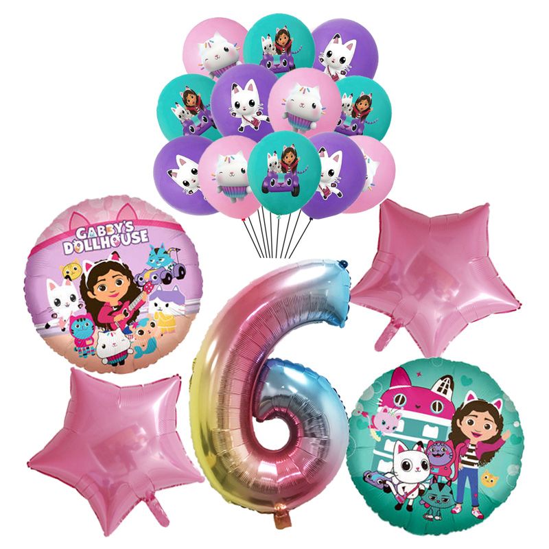Gabby Dollhouse Cats Birthday Decoration Balloon Disposable Tableware Cat Balloons Kids Gabby Doll House Figures Party Supplies