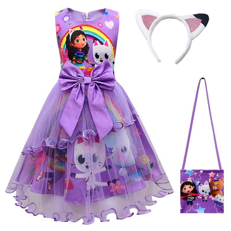 Gabby's Dollhouse Kids Summer Gabby Cats Dress Baby Girls Cute Lace Princess Dress Toddler Girls Birthday Party Dresses Headwear