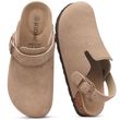 Gacimy Women's Suede Clogs with Arch Support Retro Leather Flat Mules Lady Cork Footbed Sandals Unisex Classic Clogs Slippers