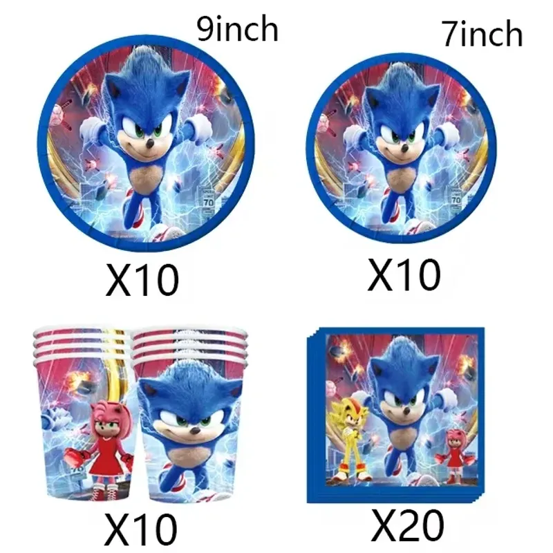 Game Blue Sonic Theme Party Supplies Set Boy Birthday Party Disposable Cutlery Paper Plate Cup Napkin Baby Shower Decoration