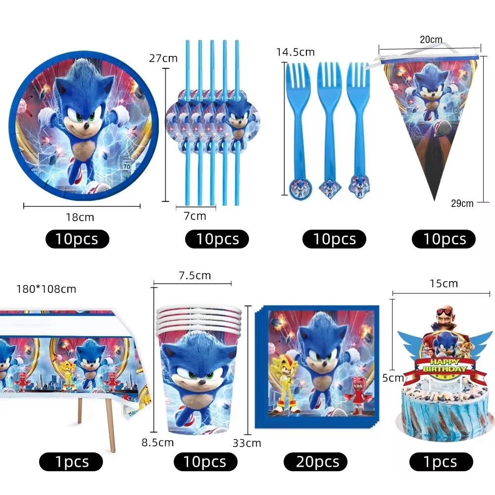 Game Blue Sonic Theme Party Supplies Set Boy Birthday Party Disposable Cutlery Paper Plate Cup Napkin Baby Shower Decoration