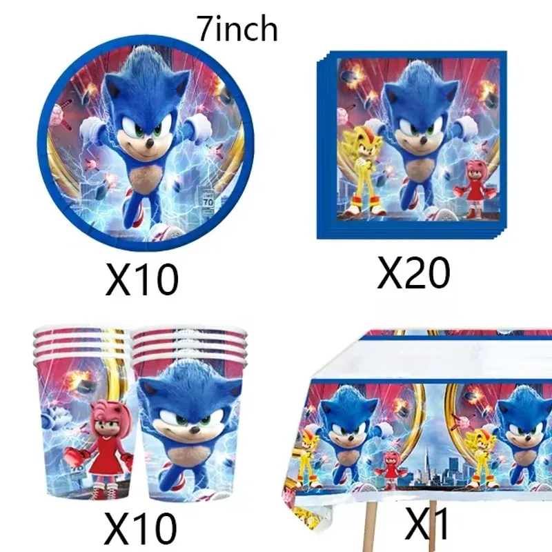 Game Blue Sonic Theme Party Supplies Set Boy Birthday Party Disposable Cutlery Paper Plate Cup Napkin Baby Shower Decoration